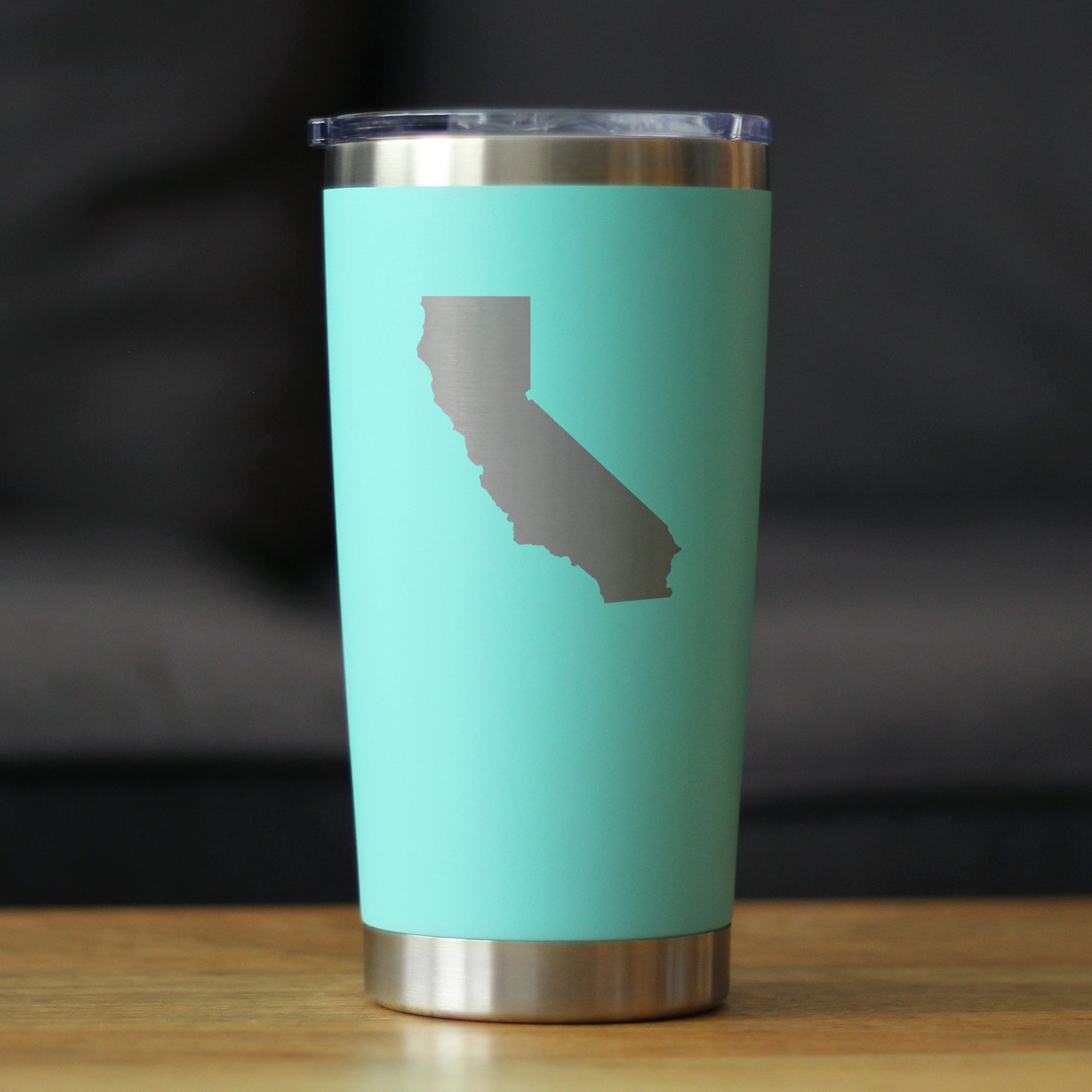 California State Outline - Insulated Coffee Tumbler Cup with Sliding Lid - Stainless Steel Travel Mug - California Gifts for Women and Men Californians ‐ Teal
