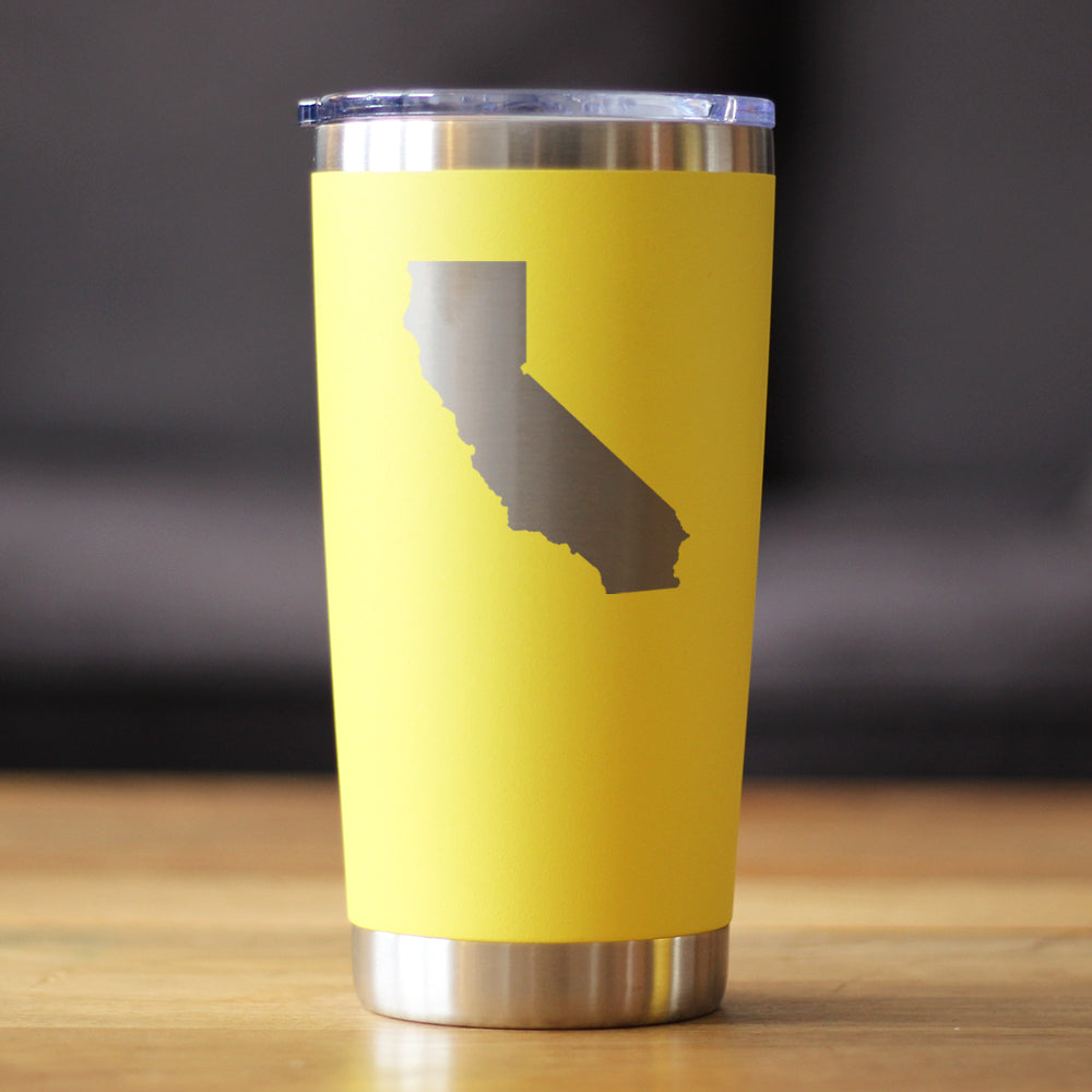 California State Outline - Insulated Coffee Tumbler Cup with Sliding Lid - Stainless Steel Travel Mug - California Gifts for Women and Men Californians ‐ Yellow