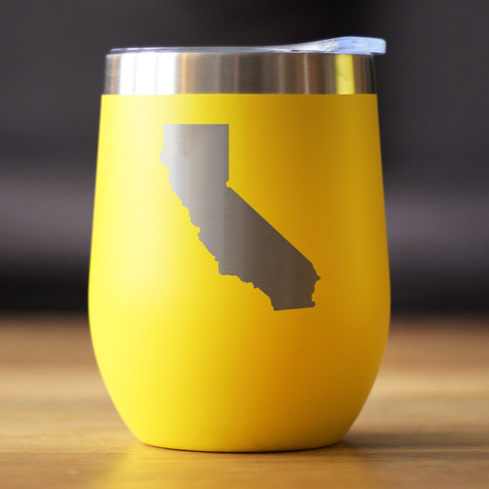 California State Outline - Wine Tumbler Glass with Sliding Lid - Stainless Steel Travel Mug - California Gifts for Women and Men Californians ‐ Yellow