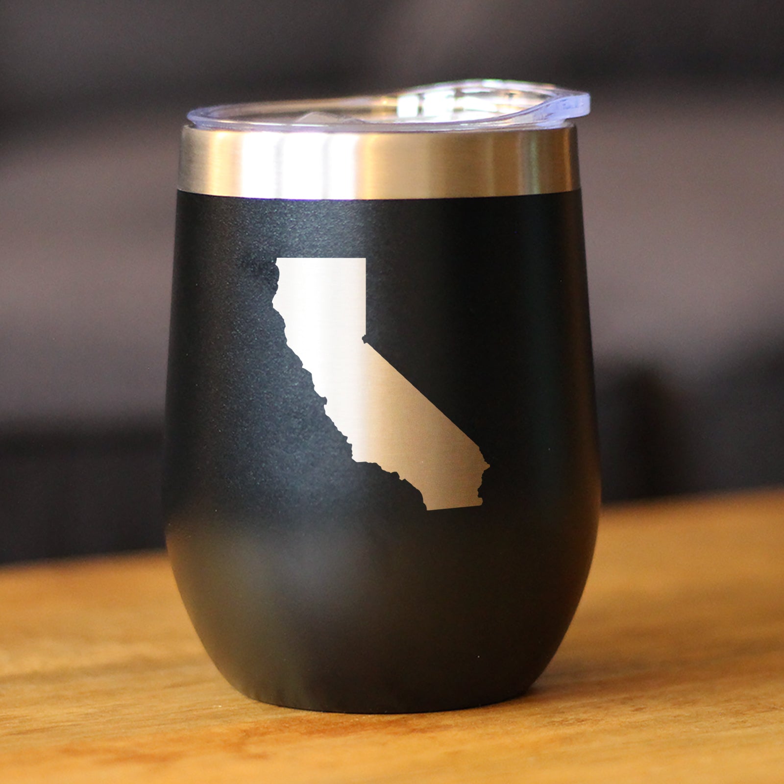 California State Outline - Wine Tumbler Glass with Sliding Lid - Stainless Steel Travel Mug - California Gifts for Women and Men Californians ‐ Black