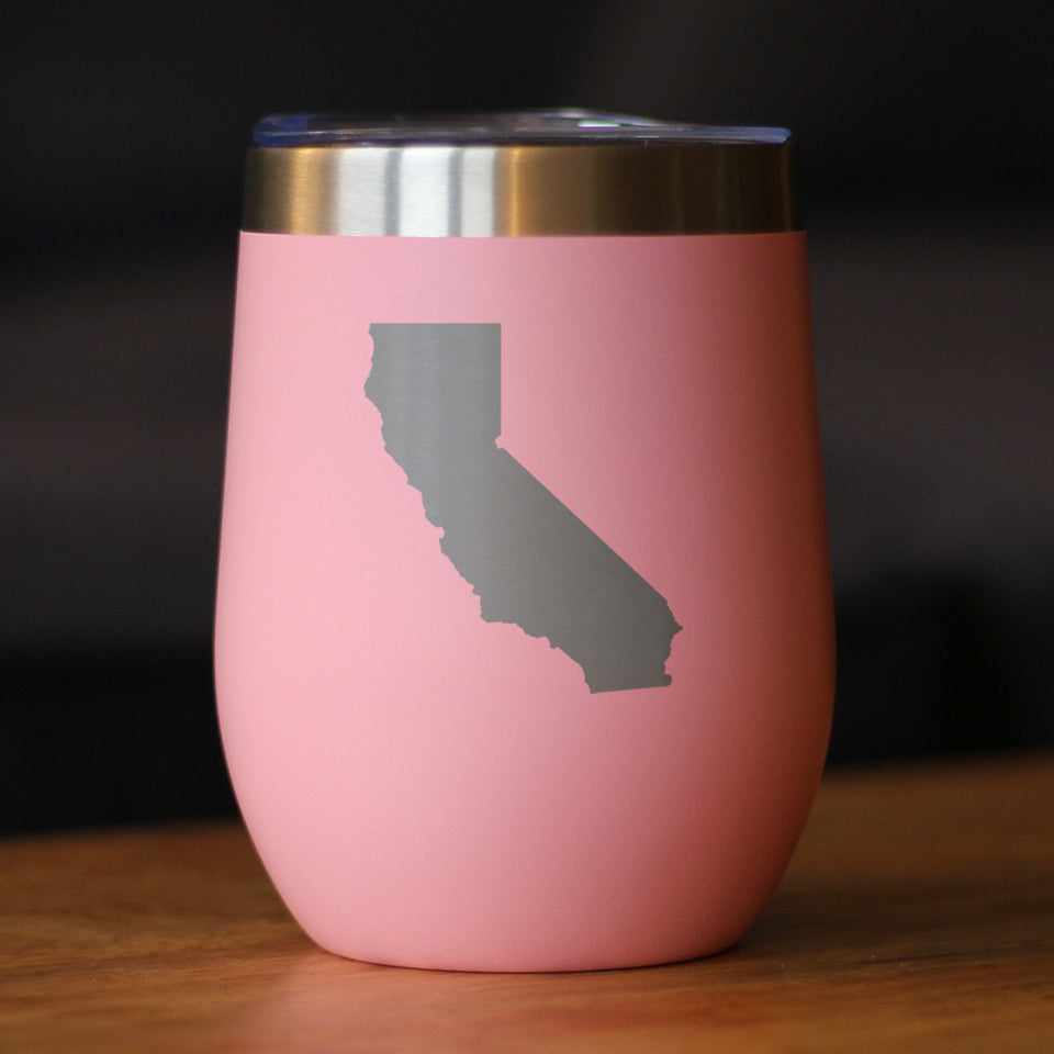California State Outline - Wine Tumbler Glass with Sliding Lid - Stainless Steel Travel Mug - California Gifts for Women and Men Californians ‐ Pink