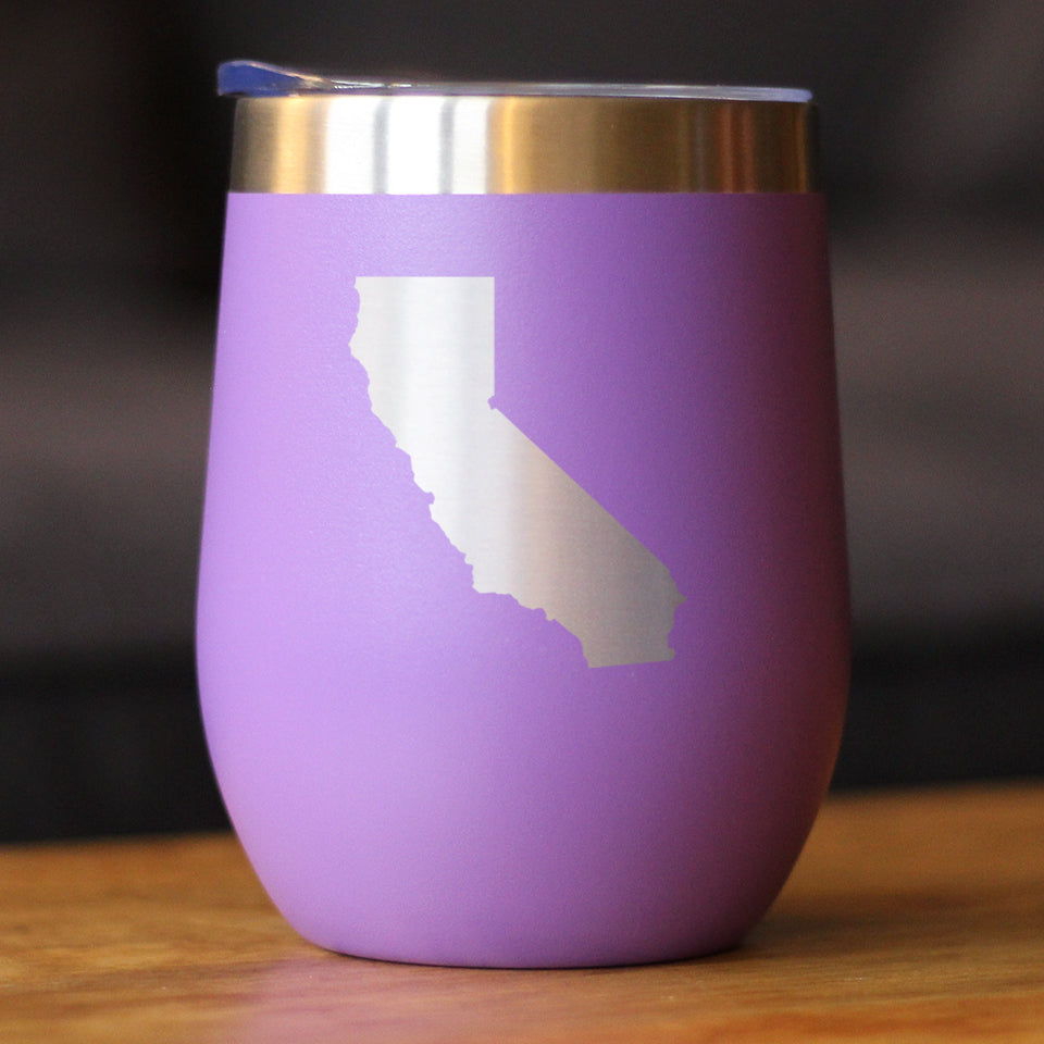 California State Outline - Wine Tumbler Glass with Sliding Lid - Stainless Steel Travel Mug - California Gifts for Women and Men Californians ‐ Purple