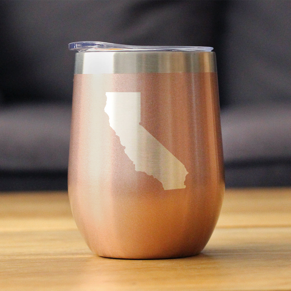 California State Outline - Wine Tumbler Glass with Sliding Lid - Stainless Steel Travel Mug - California Gifts for Women and Men Californians