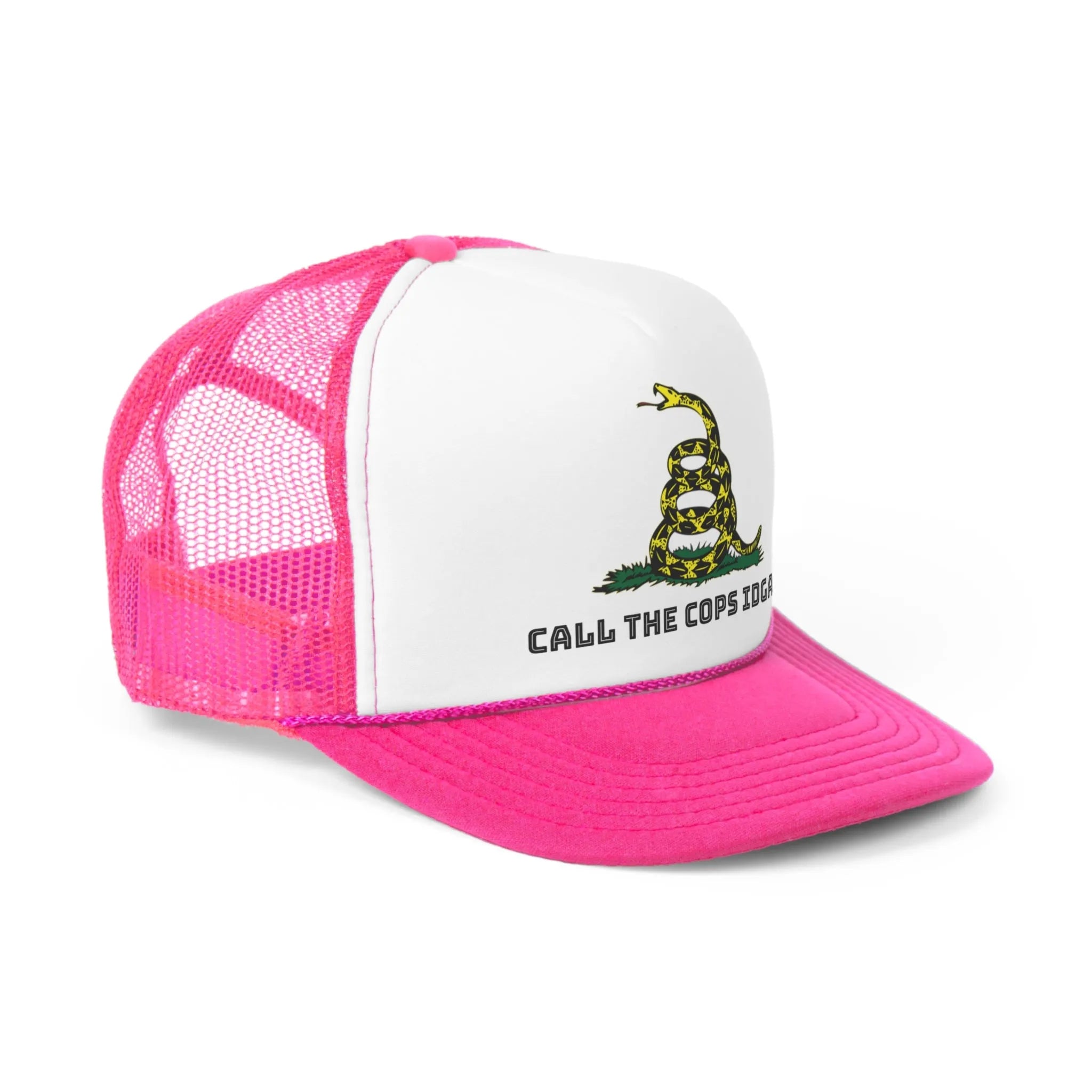 Call Cops IDGAF Gadsen Trucker Caps - 4LibertyShop.com ‐ Pink / One size