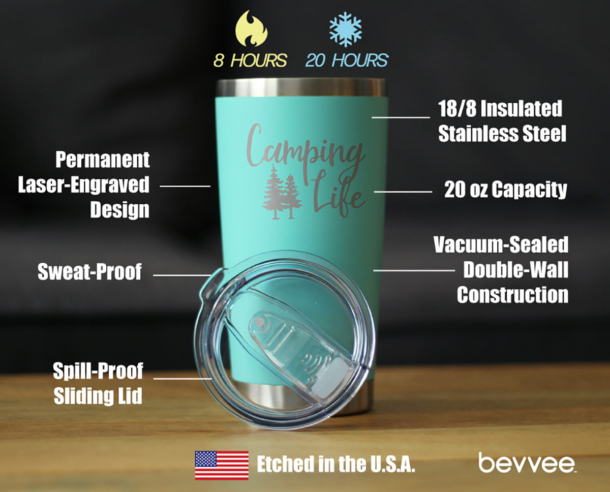 Camping Life - 20 oz Coffee Tumbler ‐ Teal