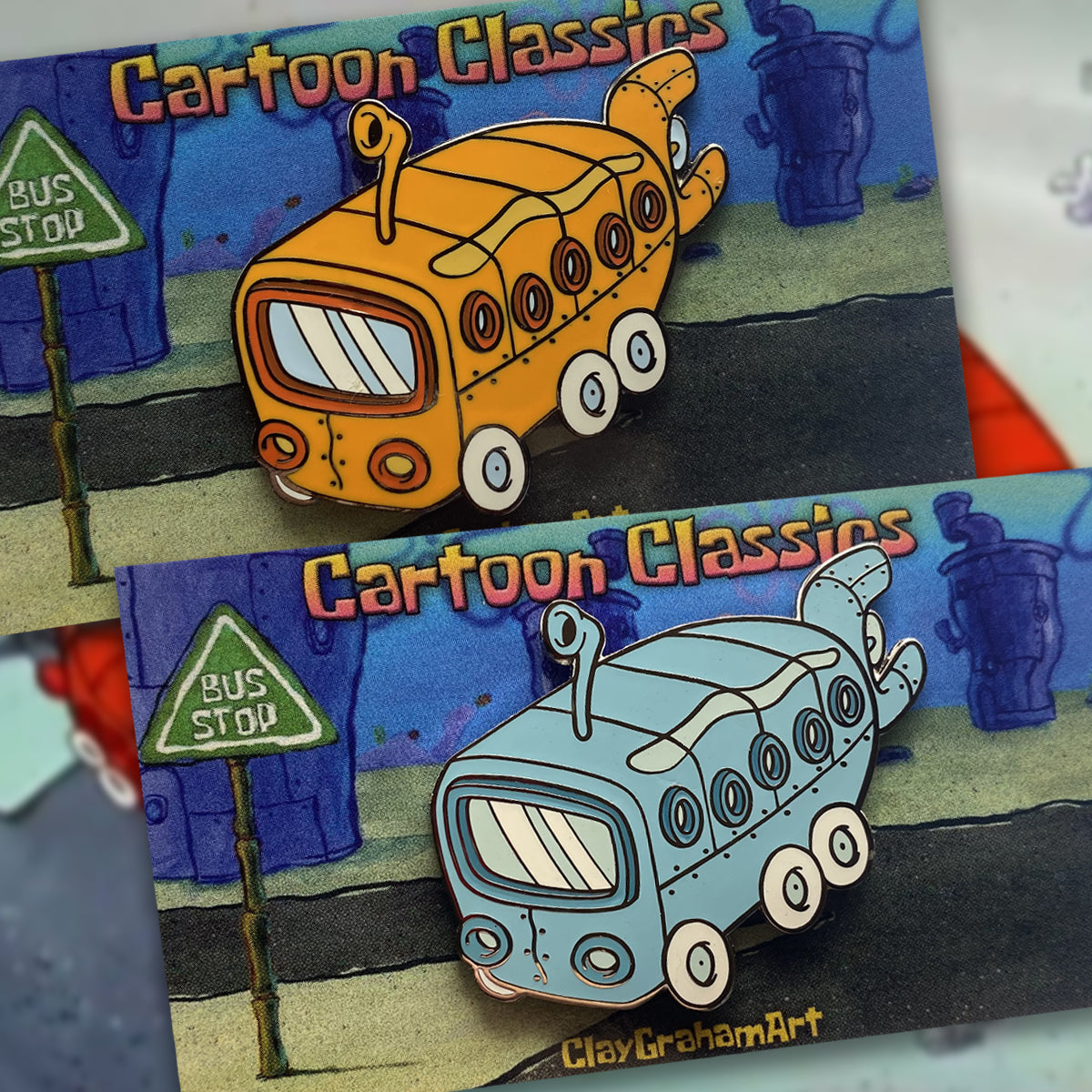 Cartoon Classics SB Bus 1.75" Hard Enamel Pin ‐ SET OF BOTH