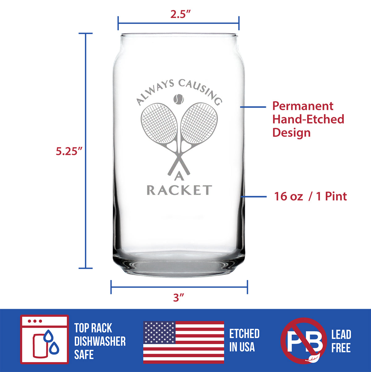 Causing a Racket - 16 Ounce Beer Can Pint Glass
