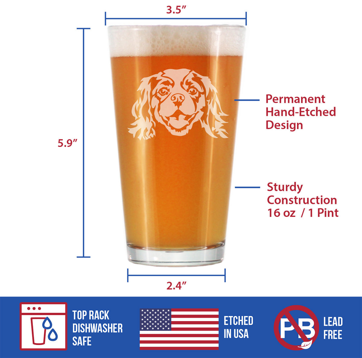 Cavalier King Charles Spaniel Face Pint Glass for Beer - Unique Dog Themed Decor and Gifts for Moms & Dads of Cavaliers - 16 Oz