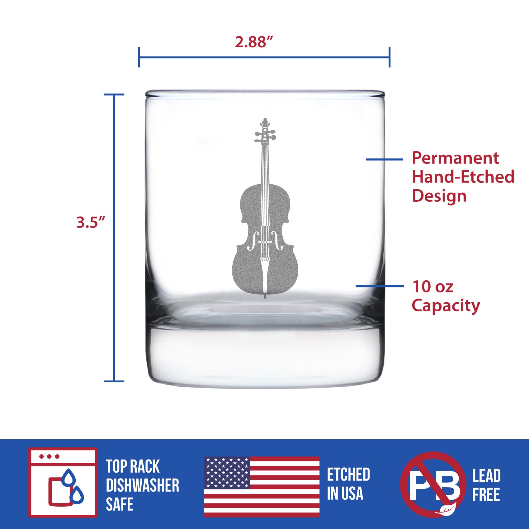 Cello - Whiskey Rocks Glass - Orchestra Gifts for Cellists - 10.25 oz Glasses