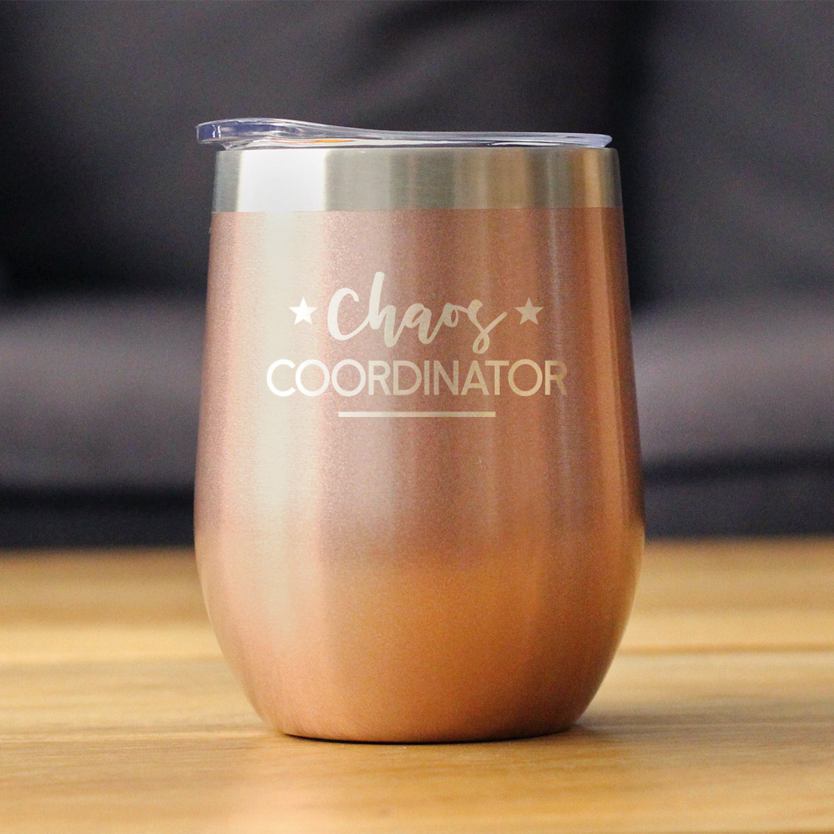 Chaos Coordinator - Wine Tumbler Glass with Sliding Lid - Stainless Steel Insulated Mug - Unique Gift for Bosses, Parents, and Teachers