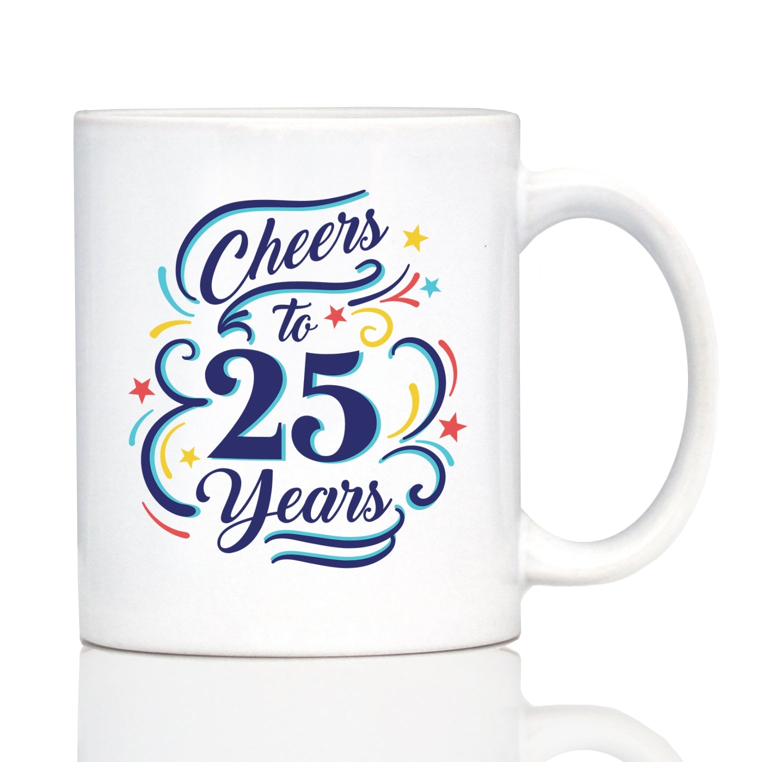 Cheers to 25 Years - Coffee Mug Gifts for Women & Men - 25th Anniversary Party Decor