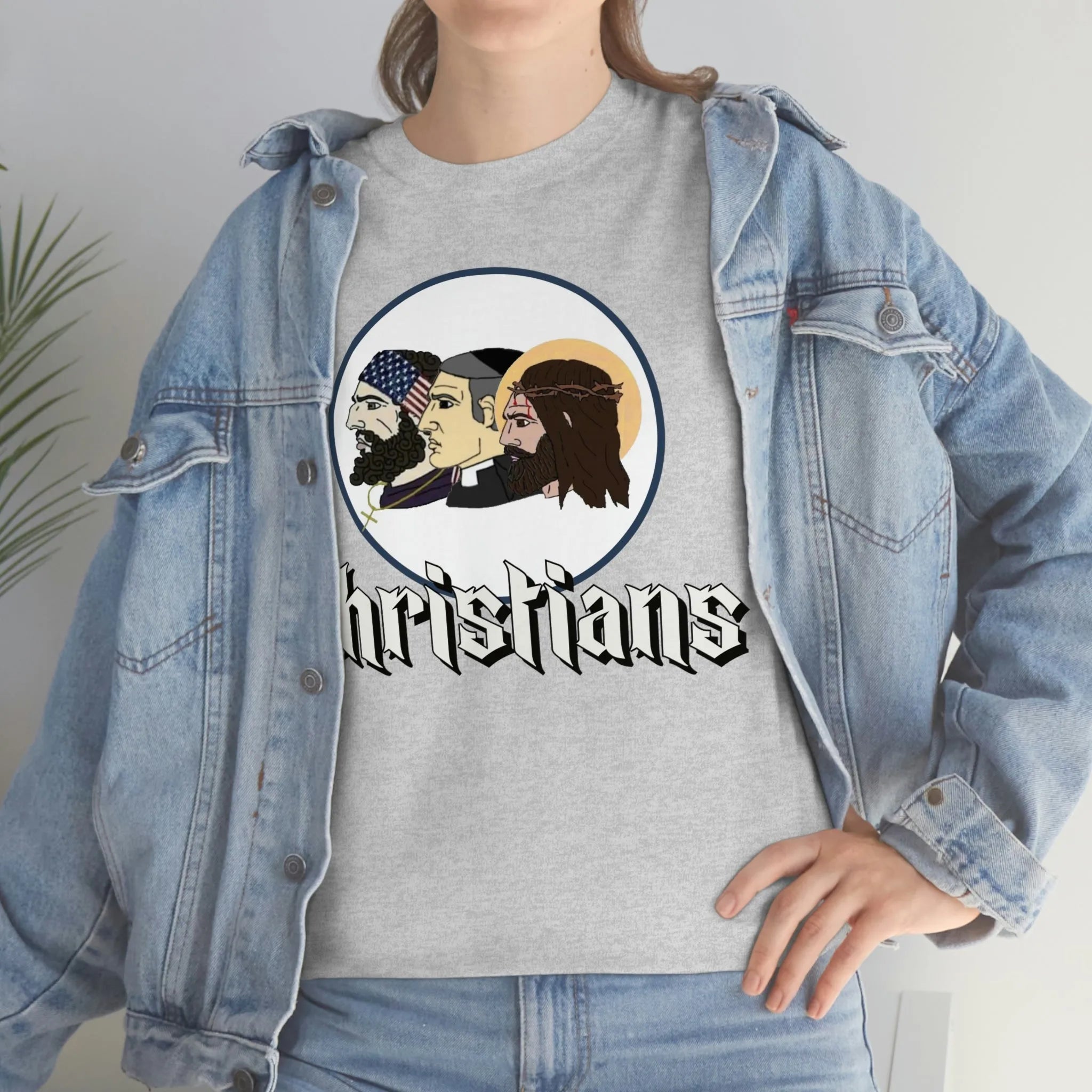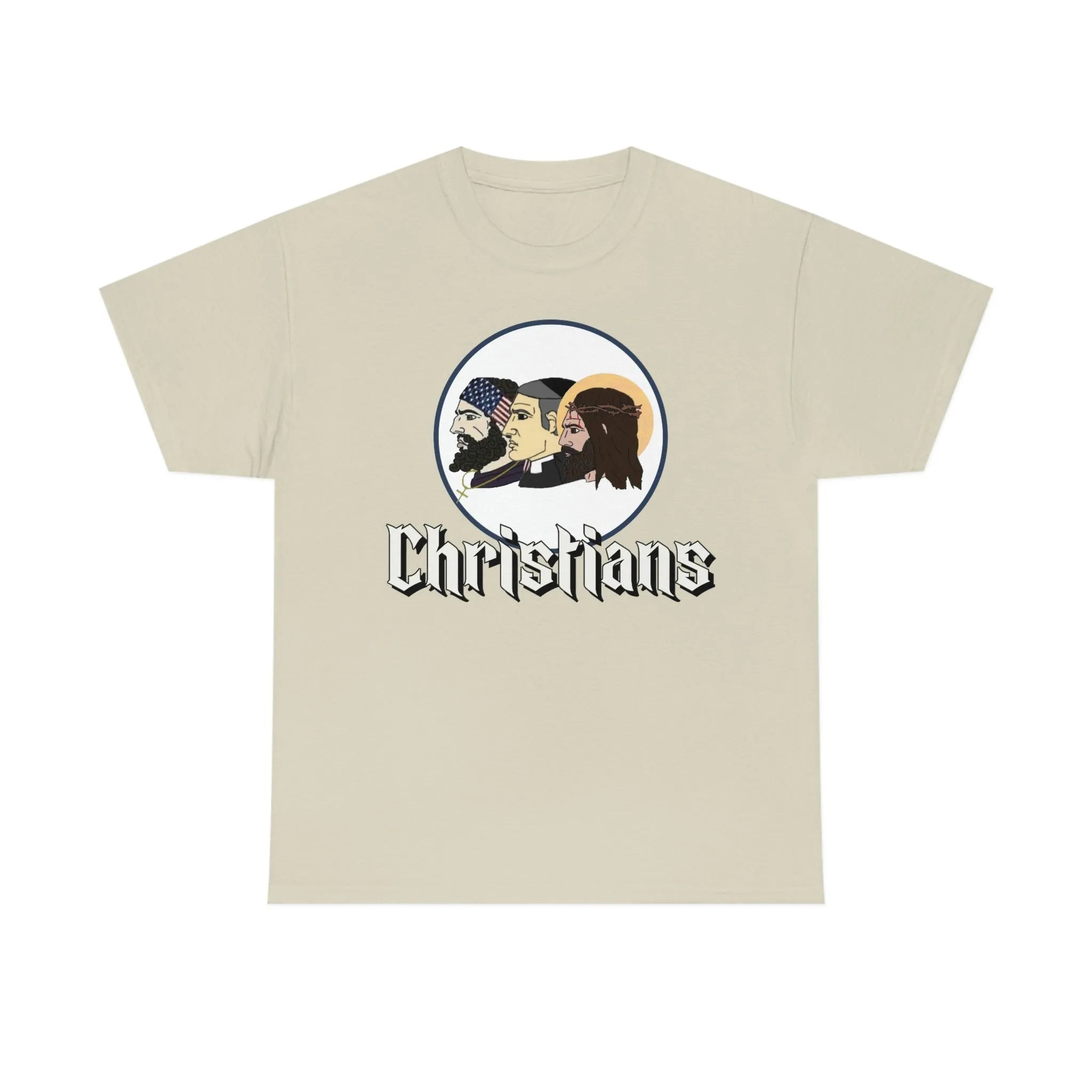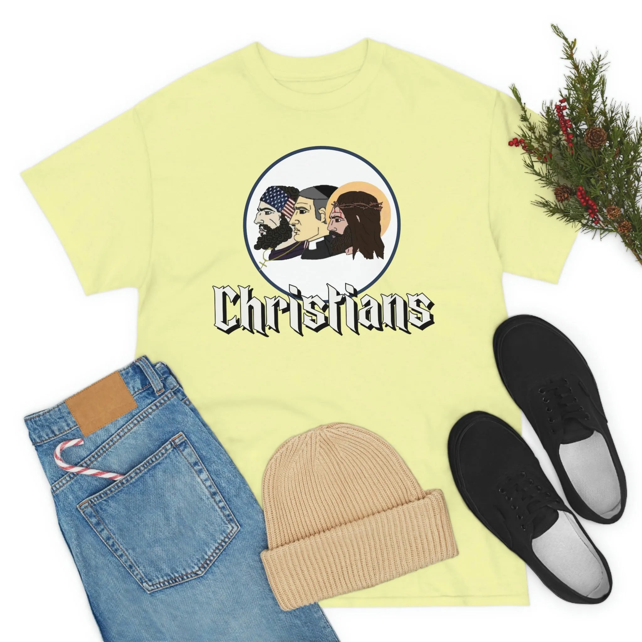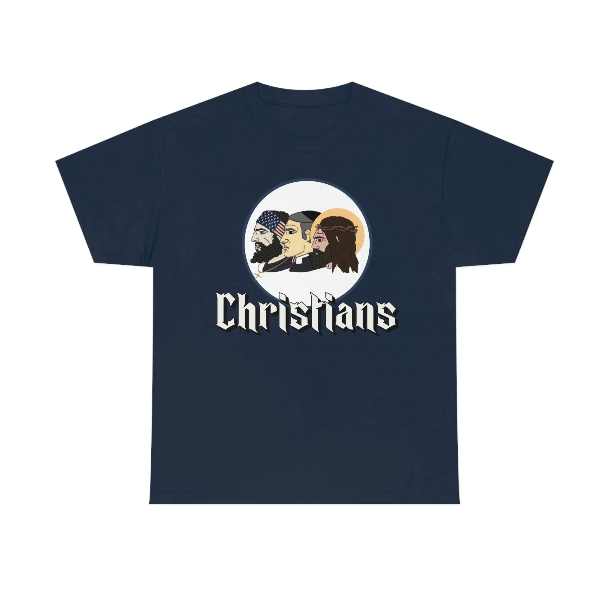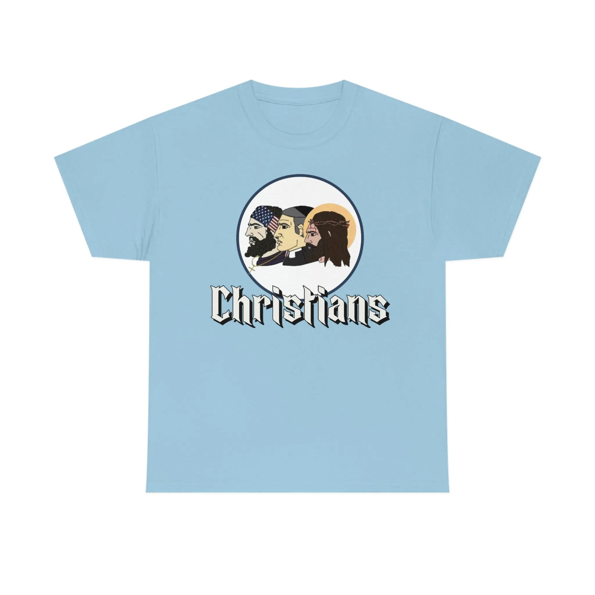 Looking for a shirt that combines your love for memes and sports? Look no further than our "Christian Chad" shirt! This shirt features the iconic Chad meme as a team logo featuring the Chad priest, the Chad American fundie, and the original son of God himself, Jesus Christ! Featuring the logo "Christians" underneath it, taking a humorous jab at the controversial "Redskins" logo.