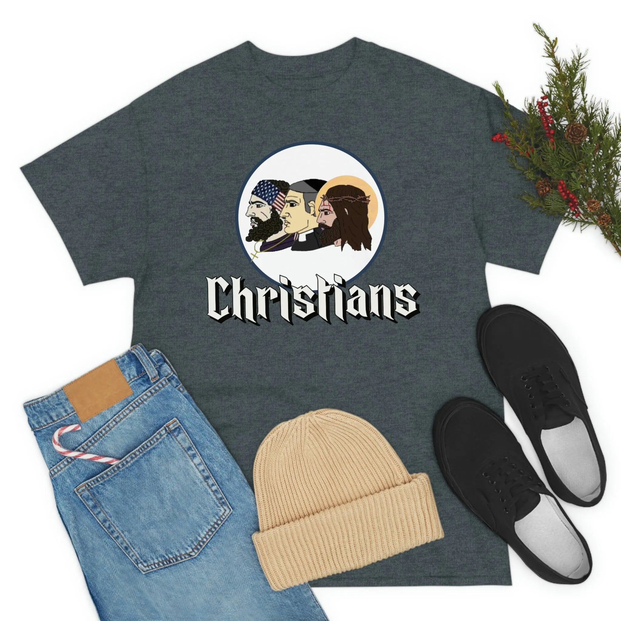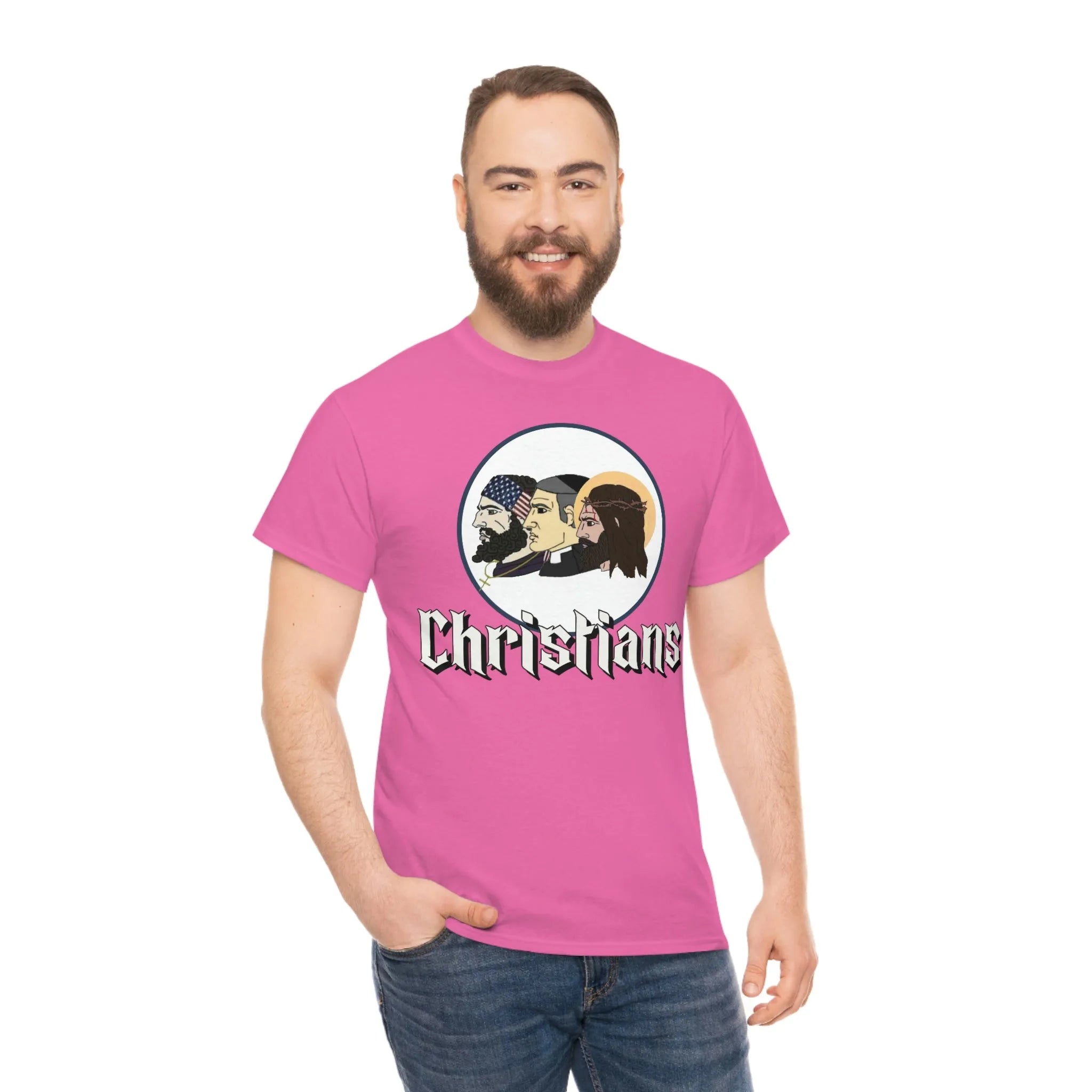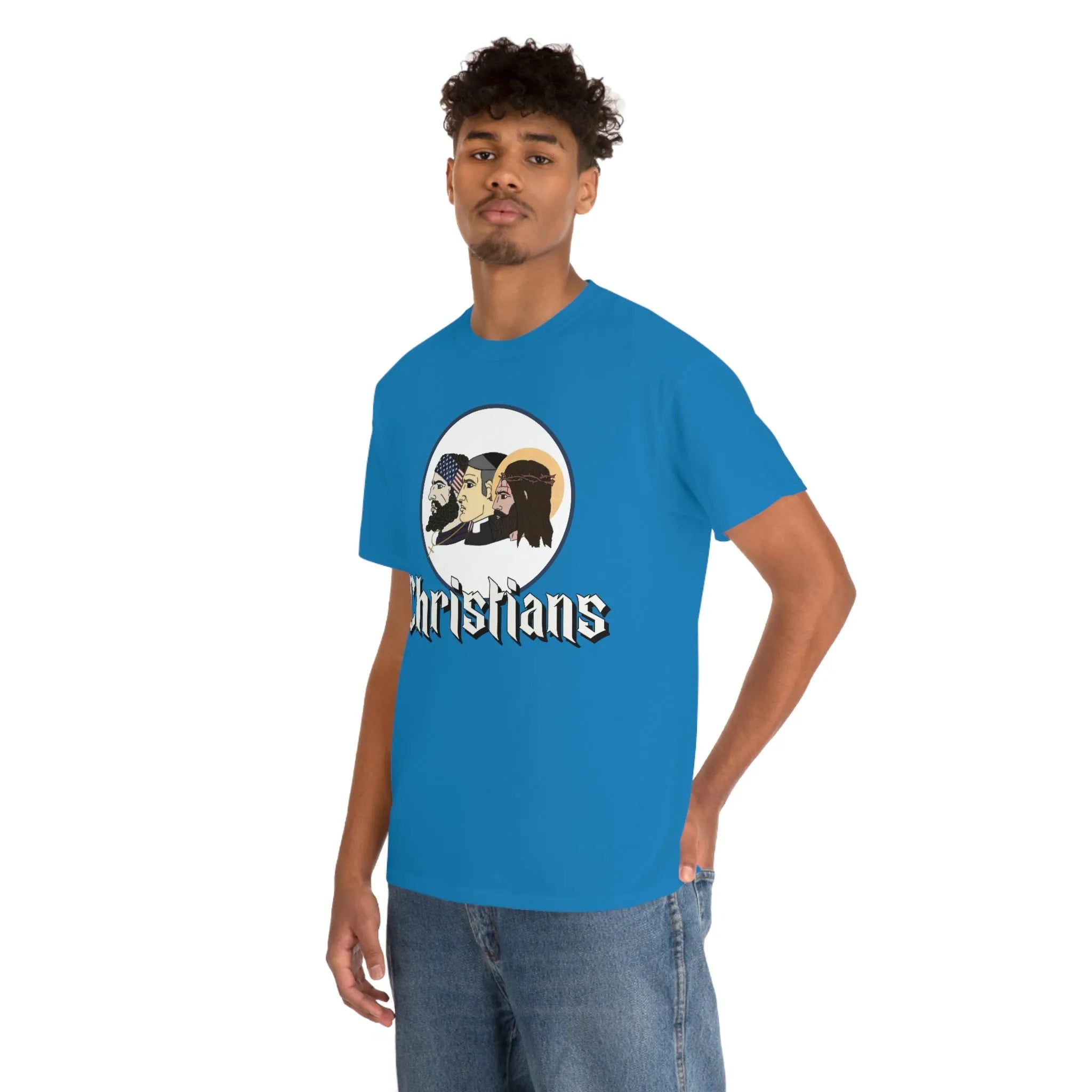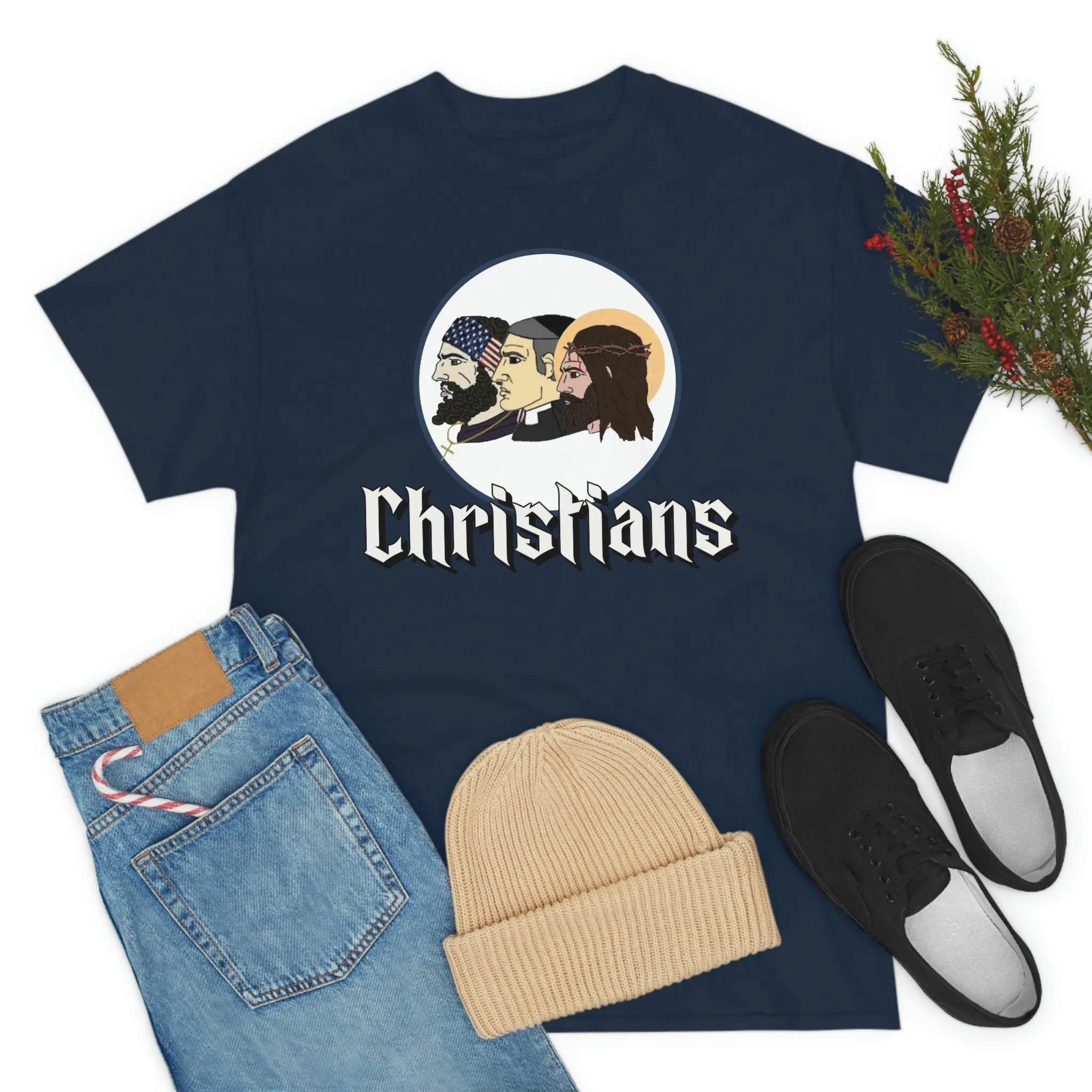 Looking for a shirt that combines your love for memes and sports? Look no further than our "Christian Chad" shirt! This shirt features the iconic Chad meme as a team logo featuring the Chad priest, the Chad American fundie, and the original son of God himself, Jesus Christ! Featuring the logo "Christians" underneath it, taking a humorous jab at the controversial "Redskins" logo.