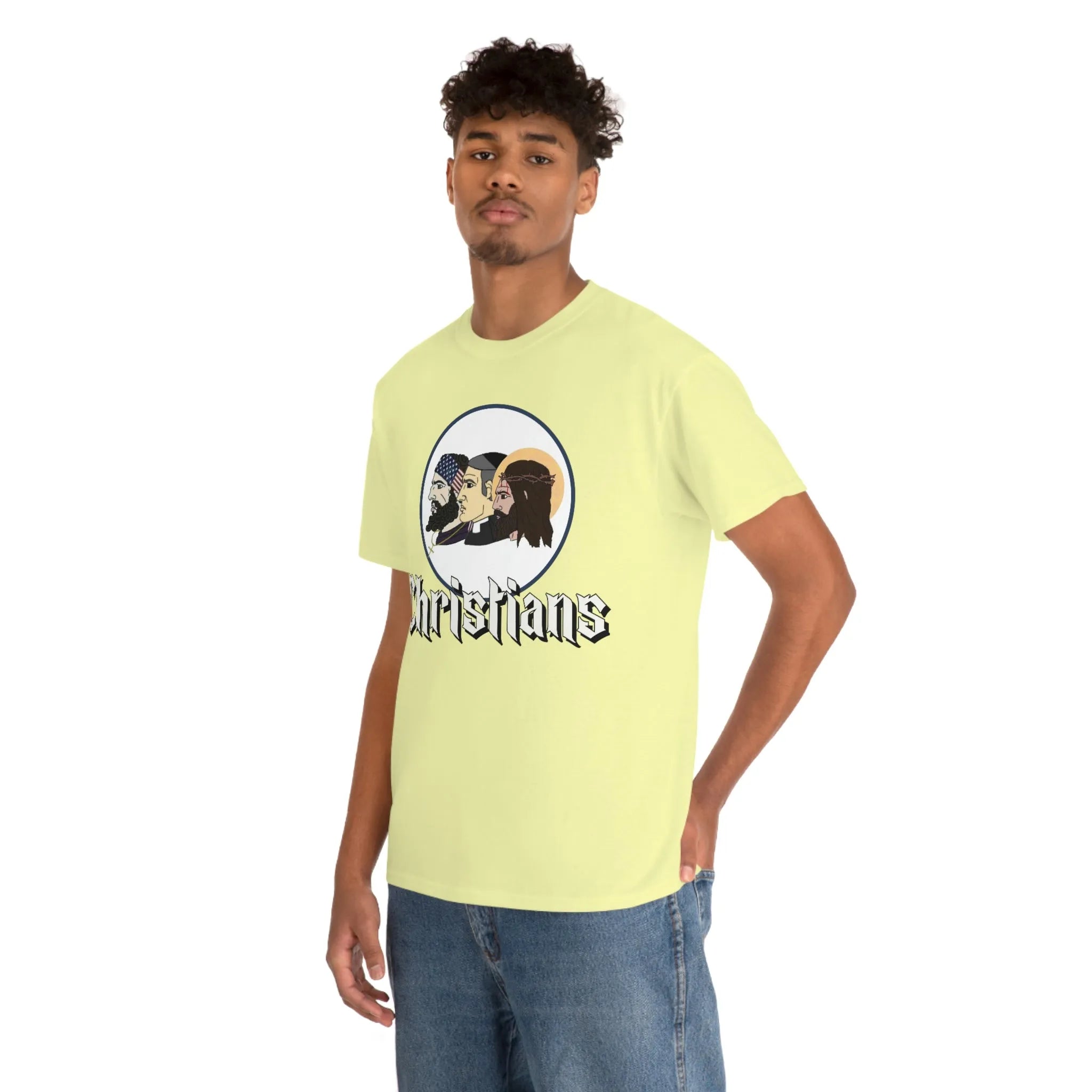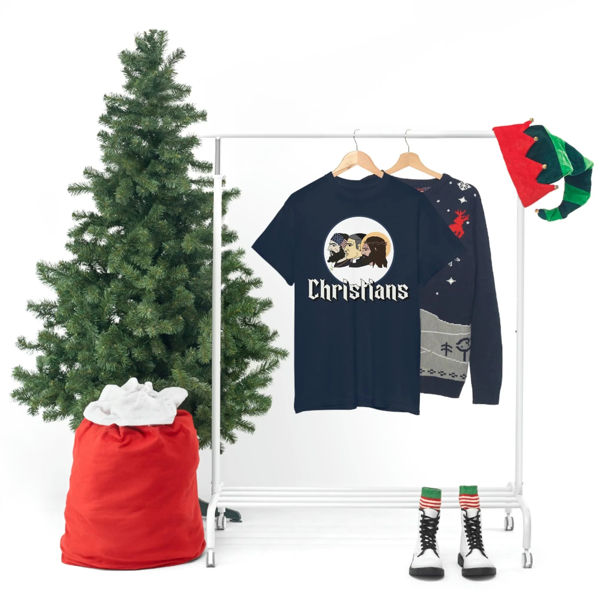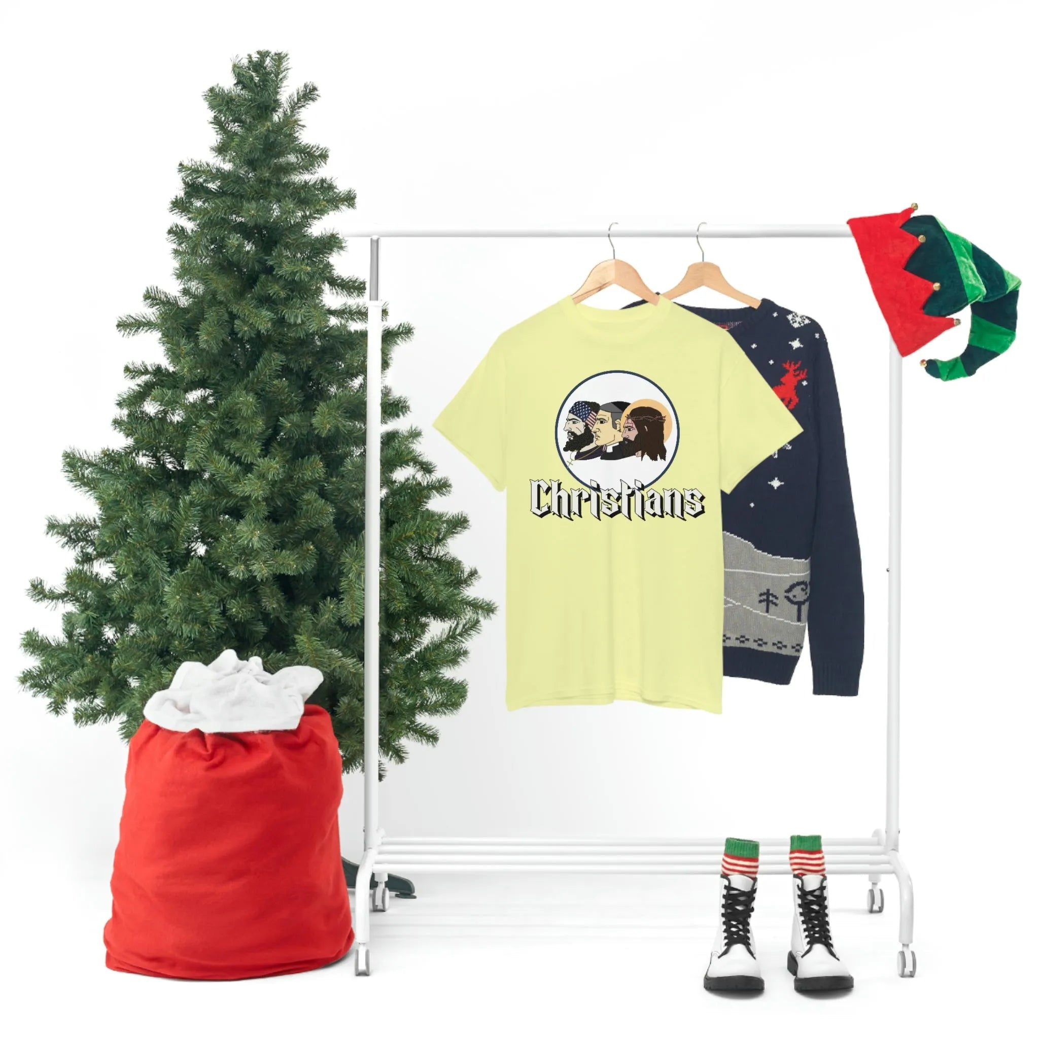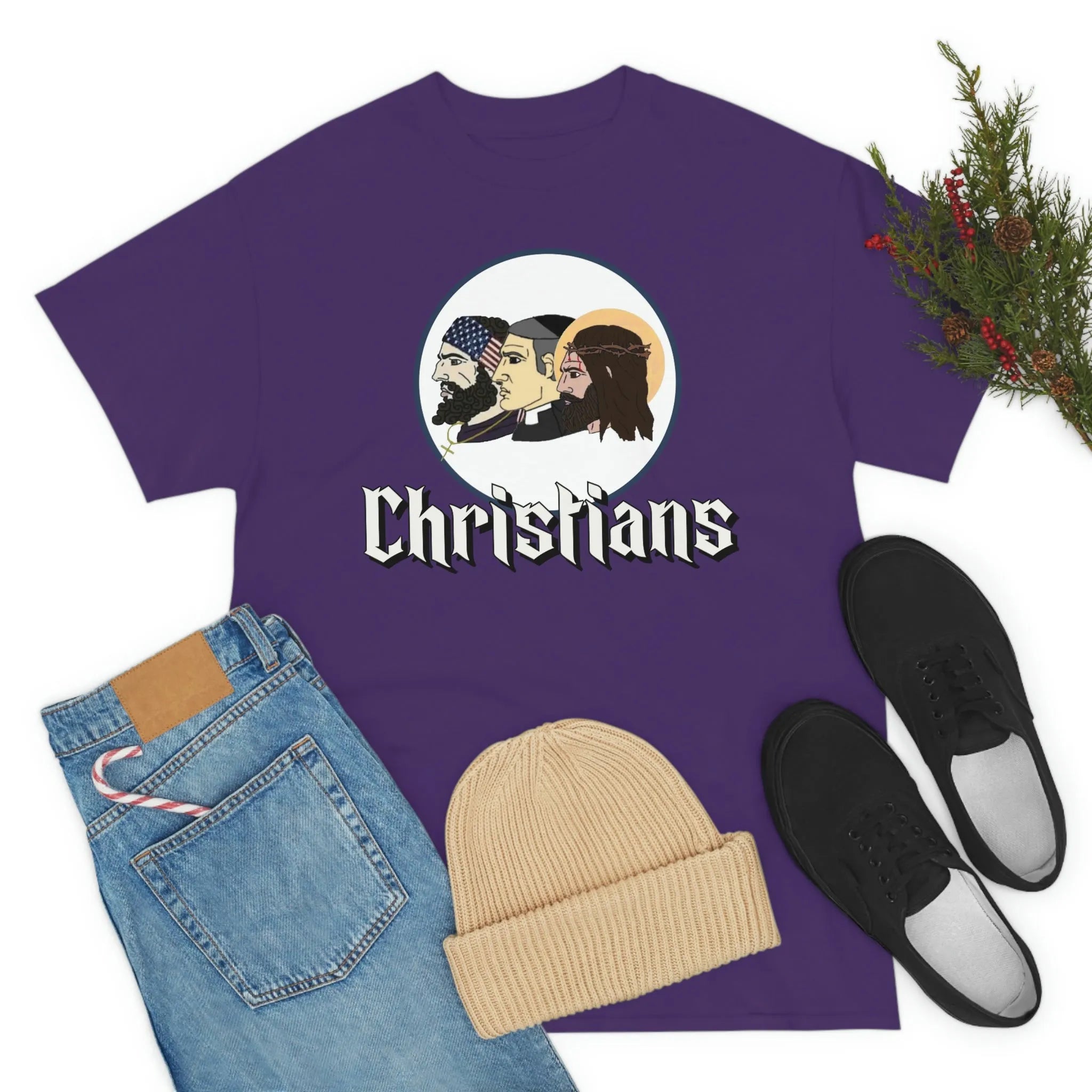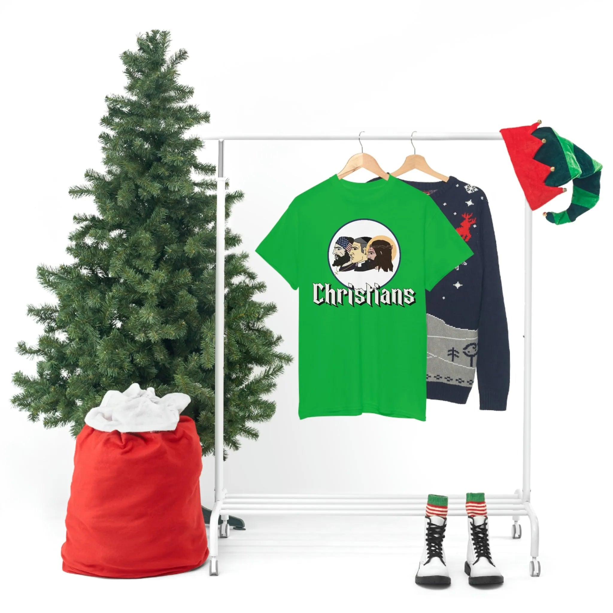 Looking for a shirt that combines your love for memes and sports? Look no further than our "Christian Chad" shirt! This shirt features the iconic Chad meme as a team logo featuring the Chad priest, the Chad American fundie, and the original son of God himself, Jesus Christ! Featuring the logo "Christians" underneath it, taking a humorous jab at the controversial "Redskins" logo.