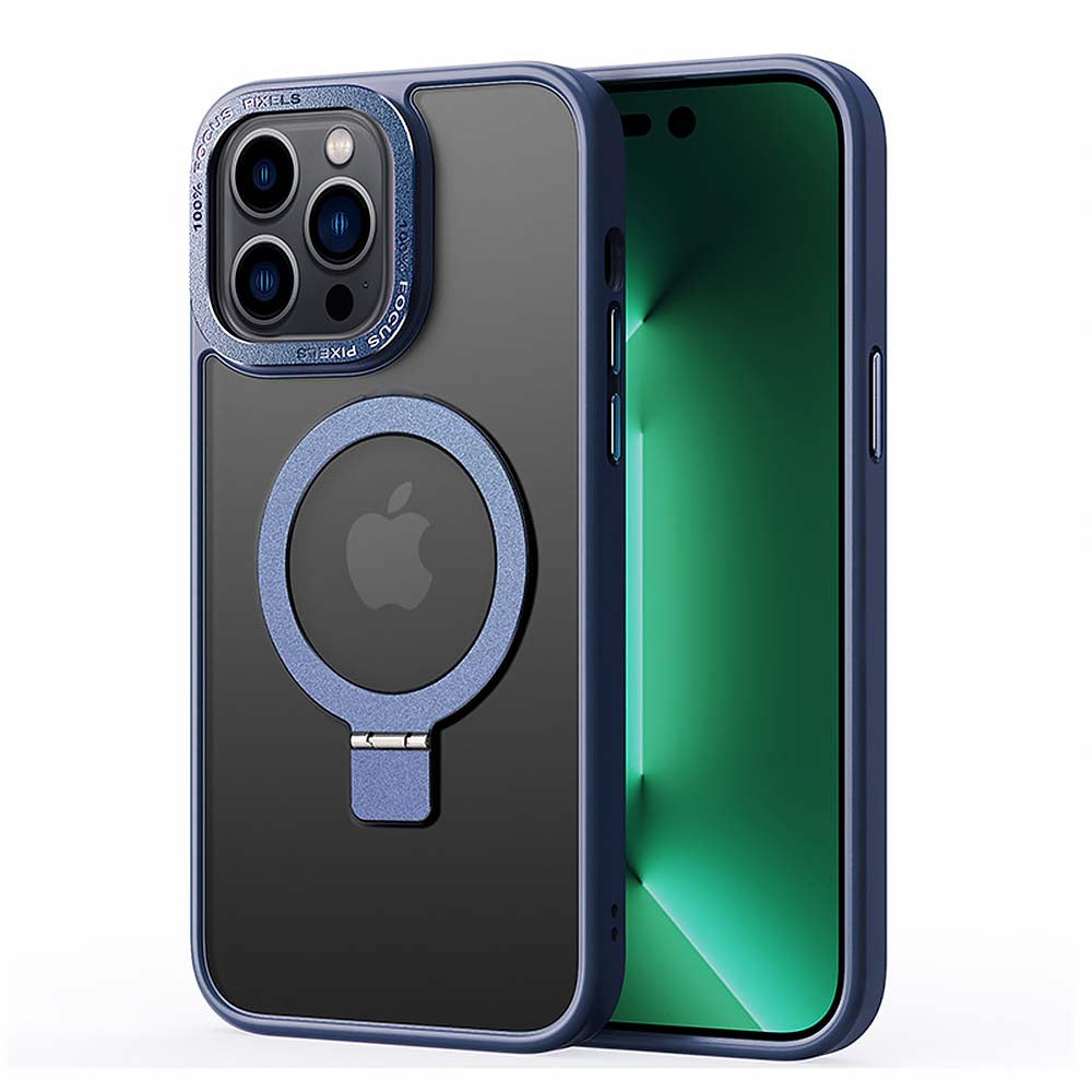 Clear Magnetic Holder & Wireless Charging iPhone Case | ZAKAPOP ‐ Dark Blue / iPhone 14 Pro Max