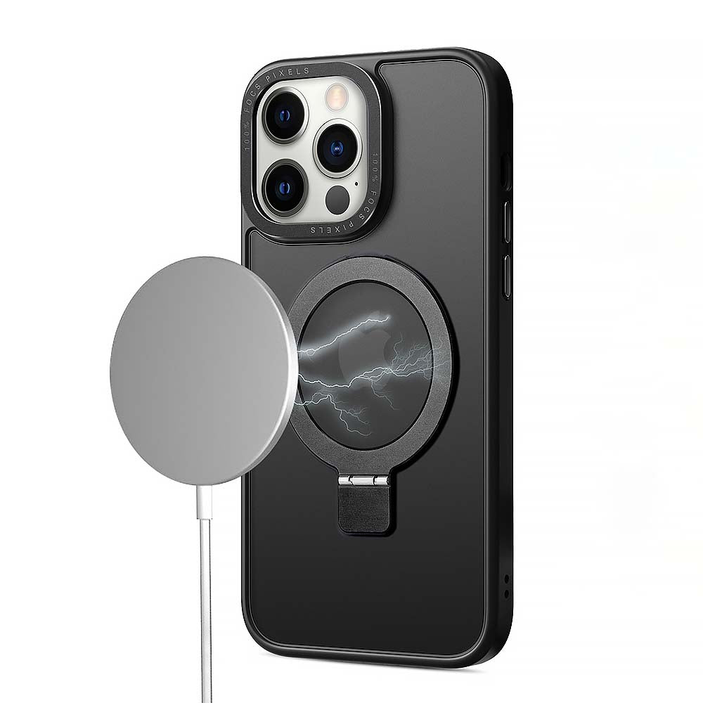 Clear Magnetic Holder & Wireless Charging iPhone Case | ZAKAPOP ‐ Black / iPhone 13 Pro