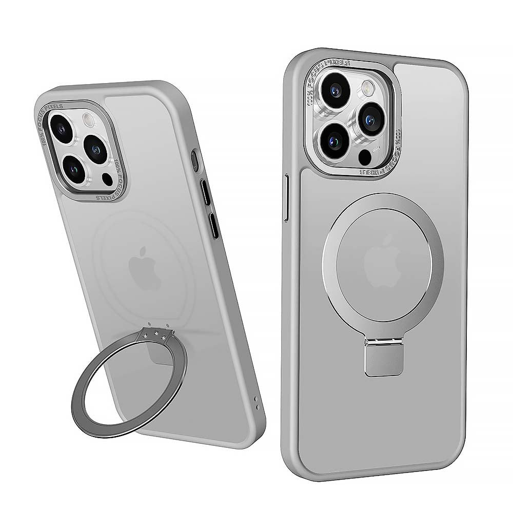 Clear Magnetic Holder & Wireless Charging iPhone Case | ZAKAPOP ‐ Grey / iPhone 15 Pro Max