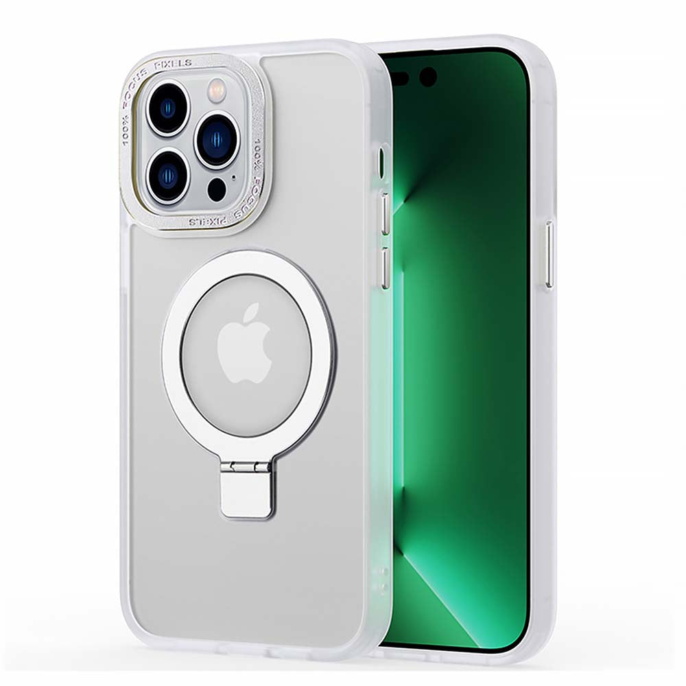 Clear Magnetic Holder & Wireless Charging iPhone Case | ZAKAPOP ‐ White / iPhone 14 Pro Max