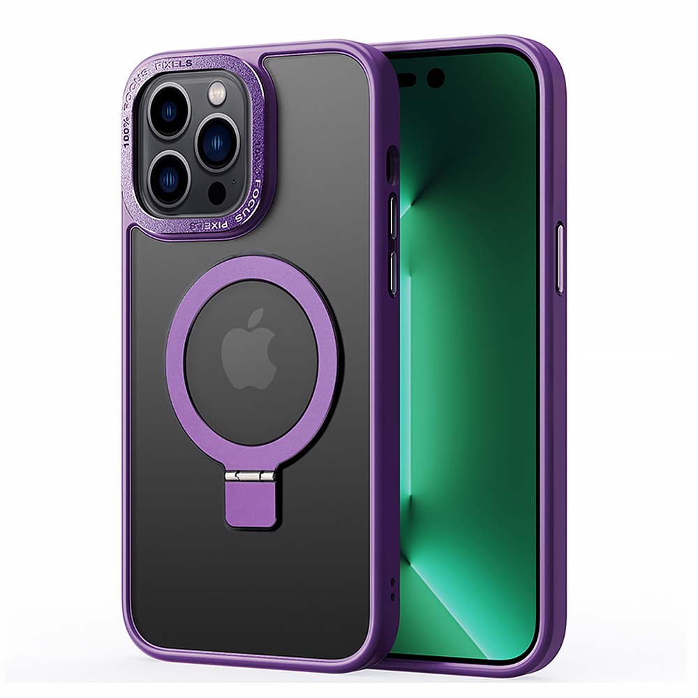 Clear Magnetic Holder & Wireless Charging iPhone Case | ZAKAPOP ‐ Purple / iPhone 15 Pro