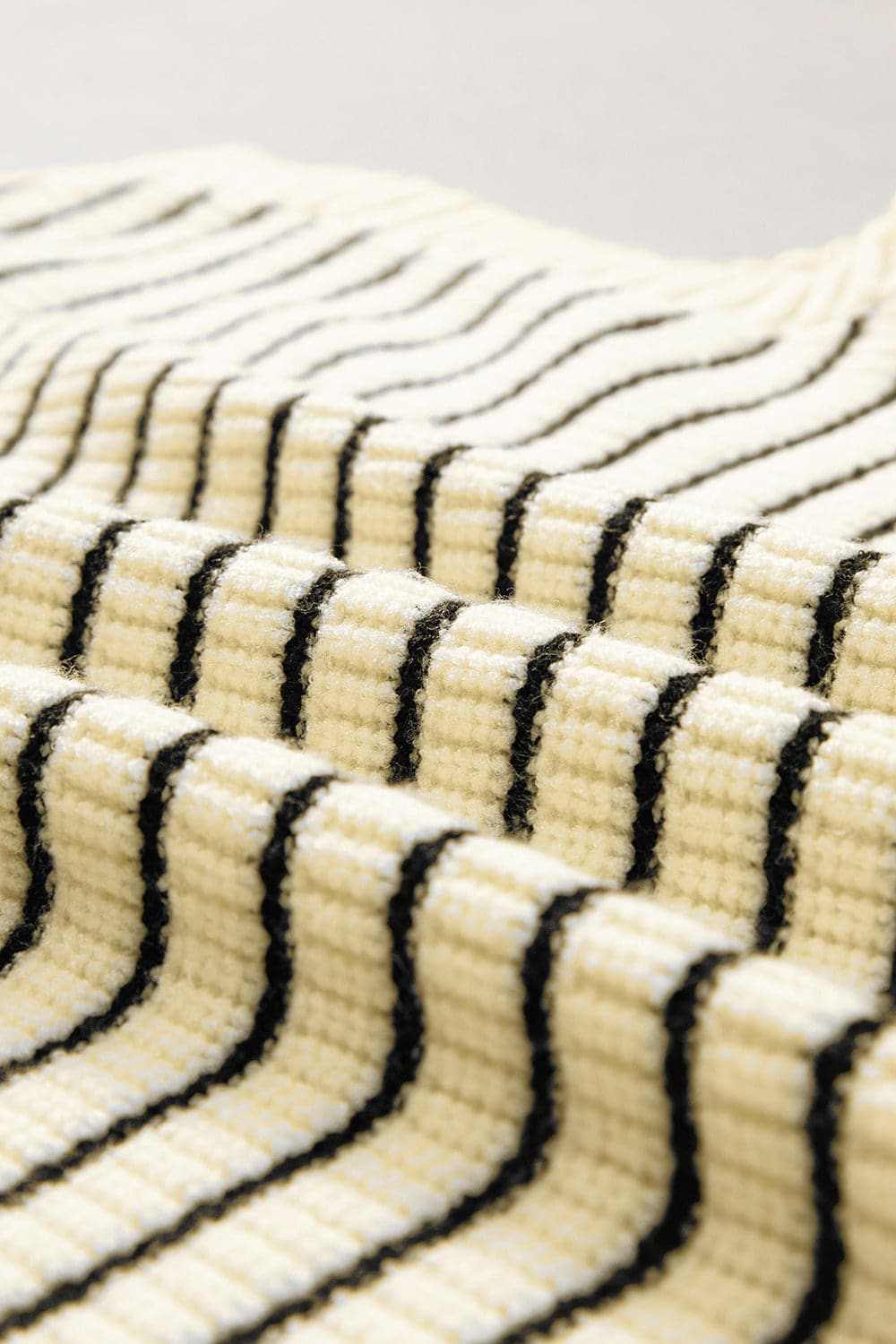 Color: cream with black stripes. This top pairs well with denim, casual skirts, or layered under lightweight outerwear for versatile day-to-night styling.