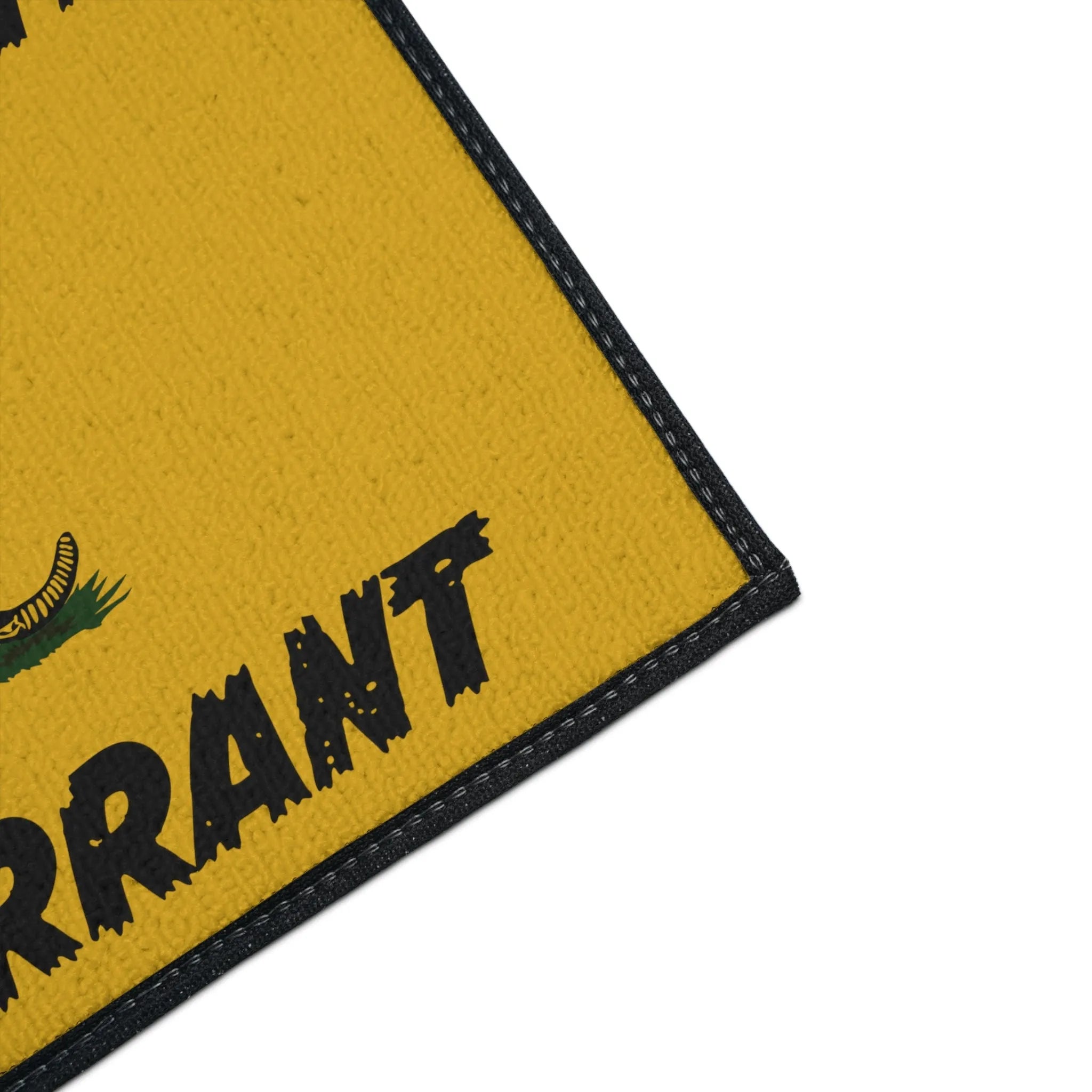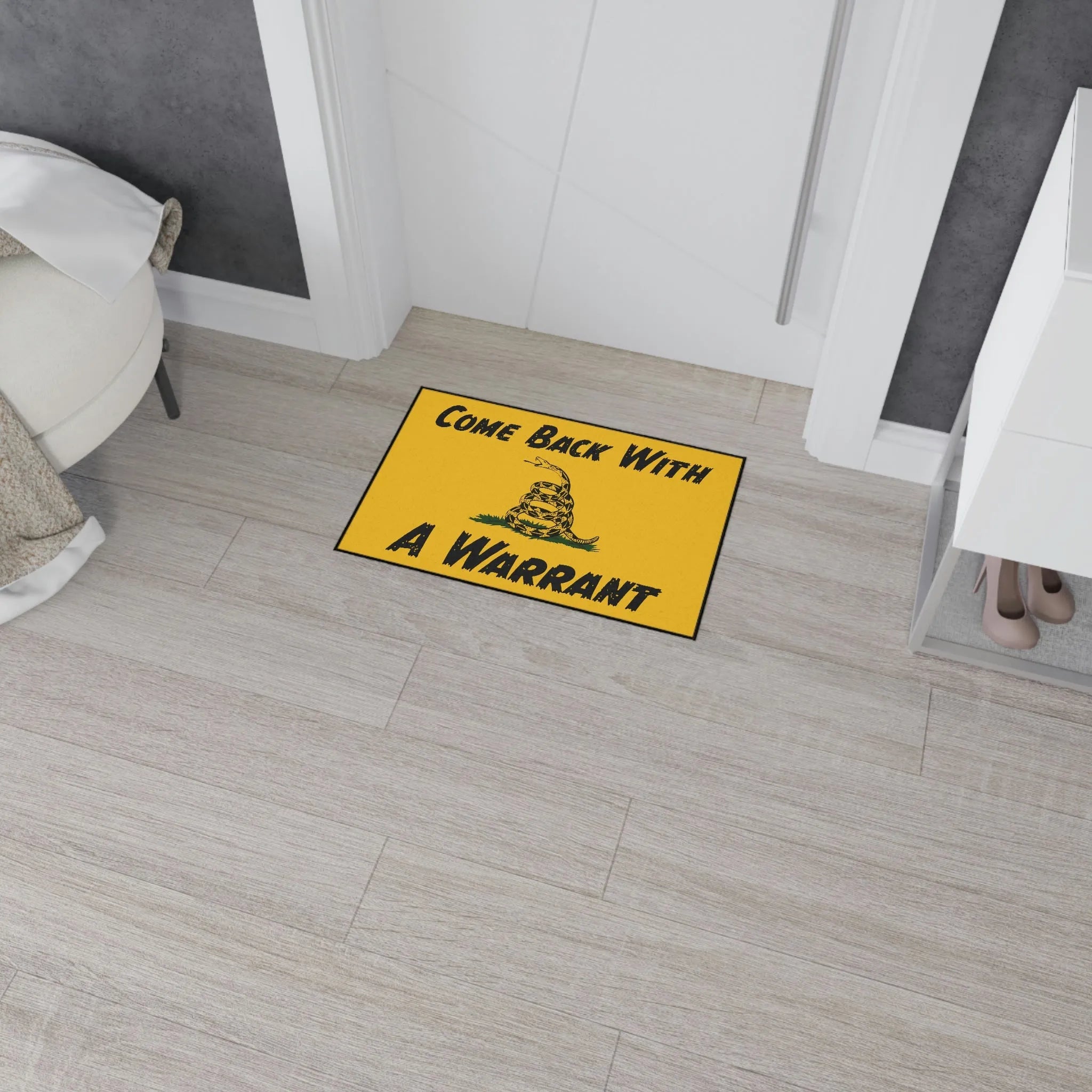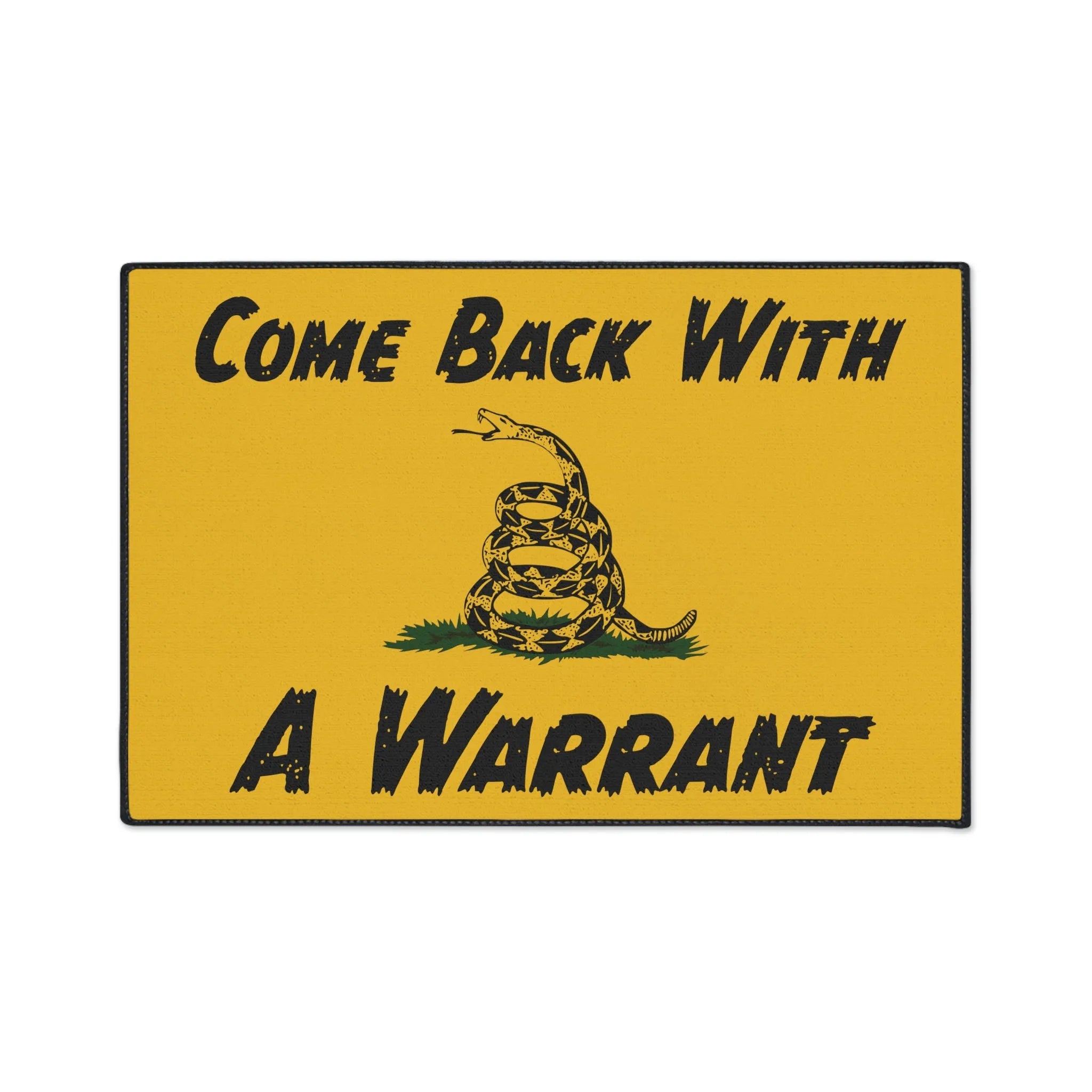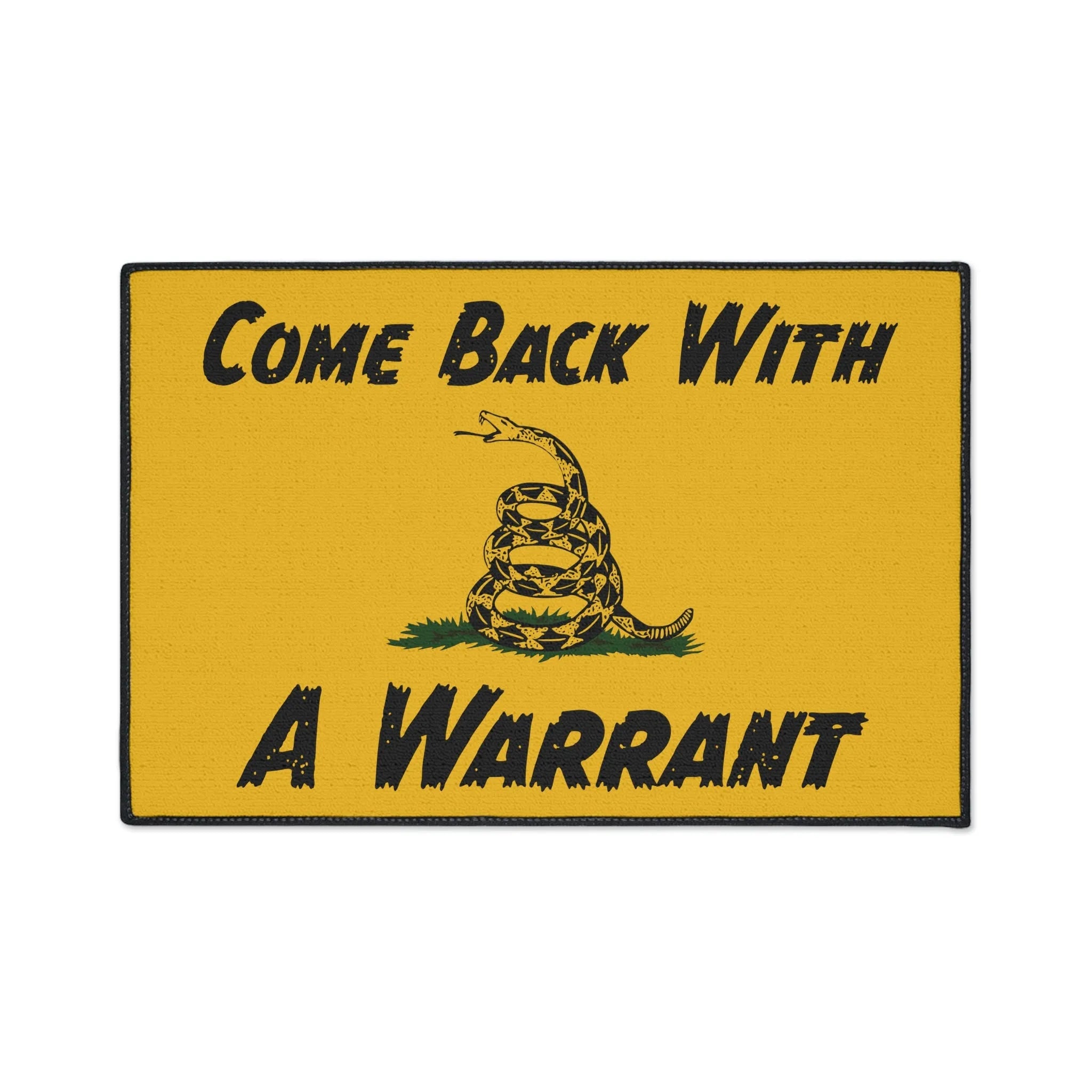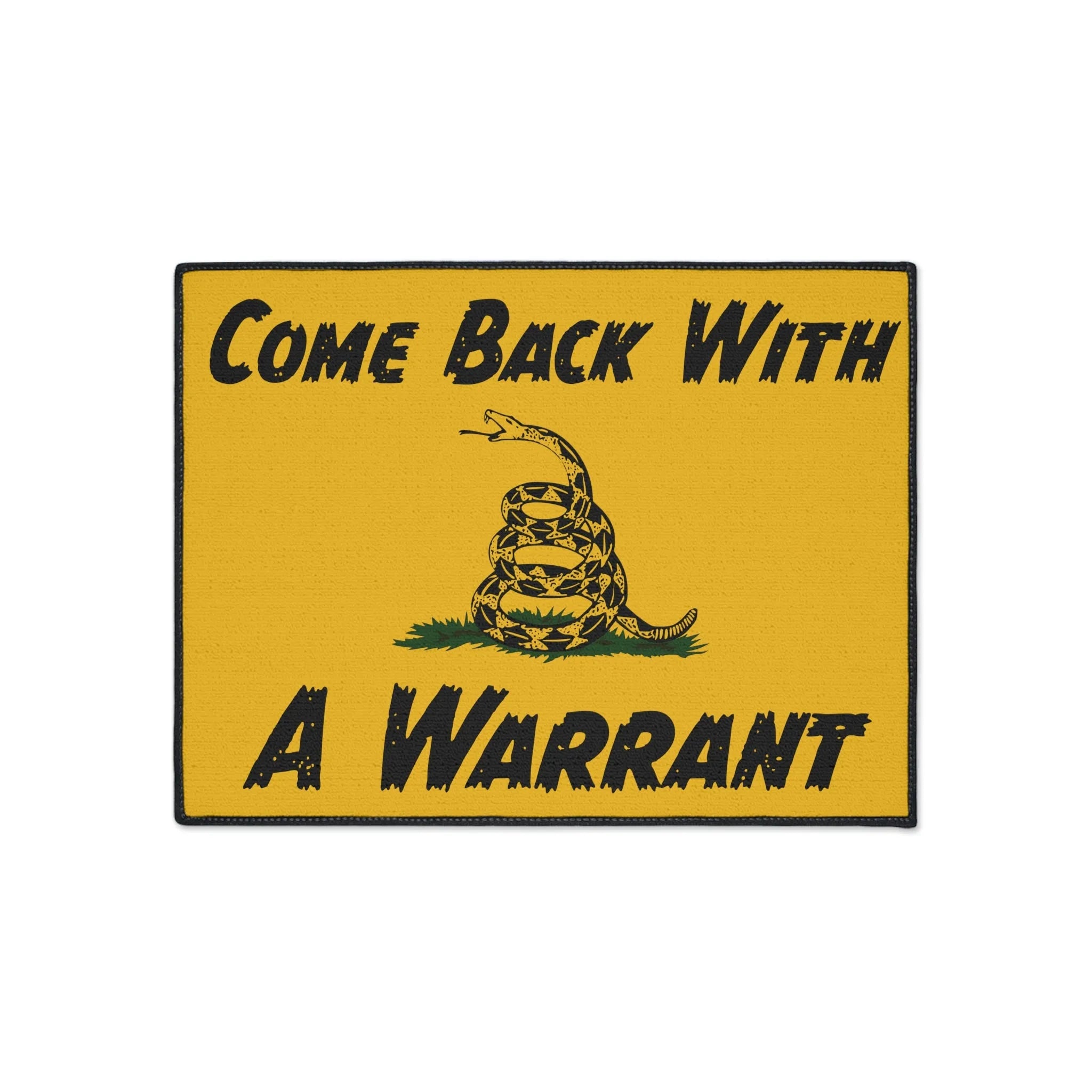 Introducing our "Come Back With A Warrant" Rubber Mat with a Gadsden Snake design, a perfect addition to any libertarian's home or office.