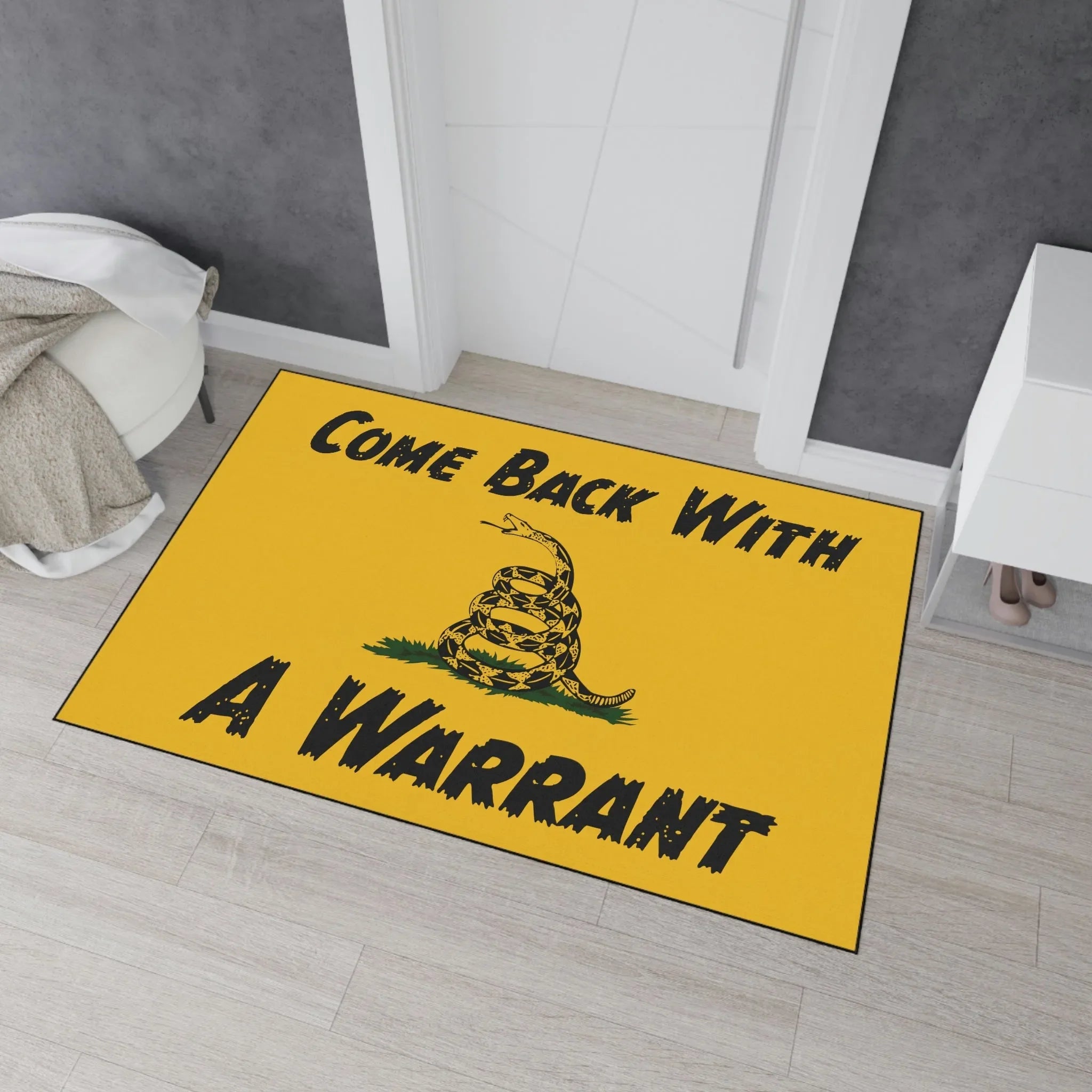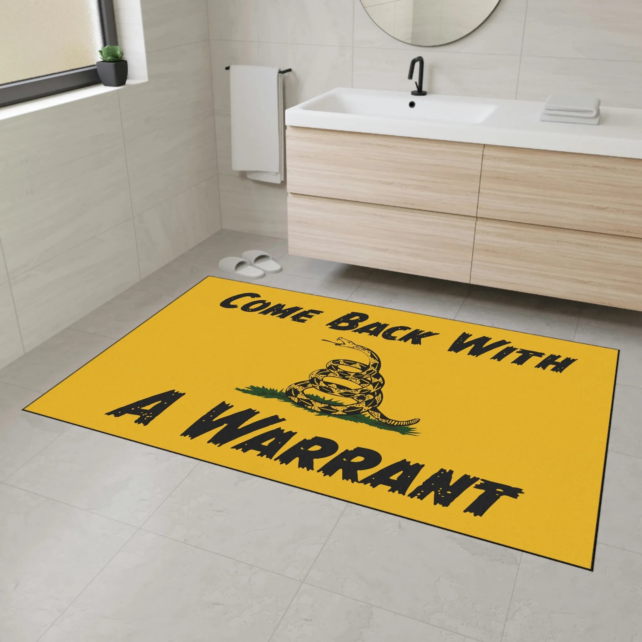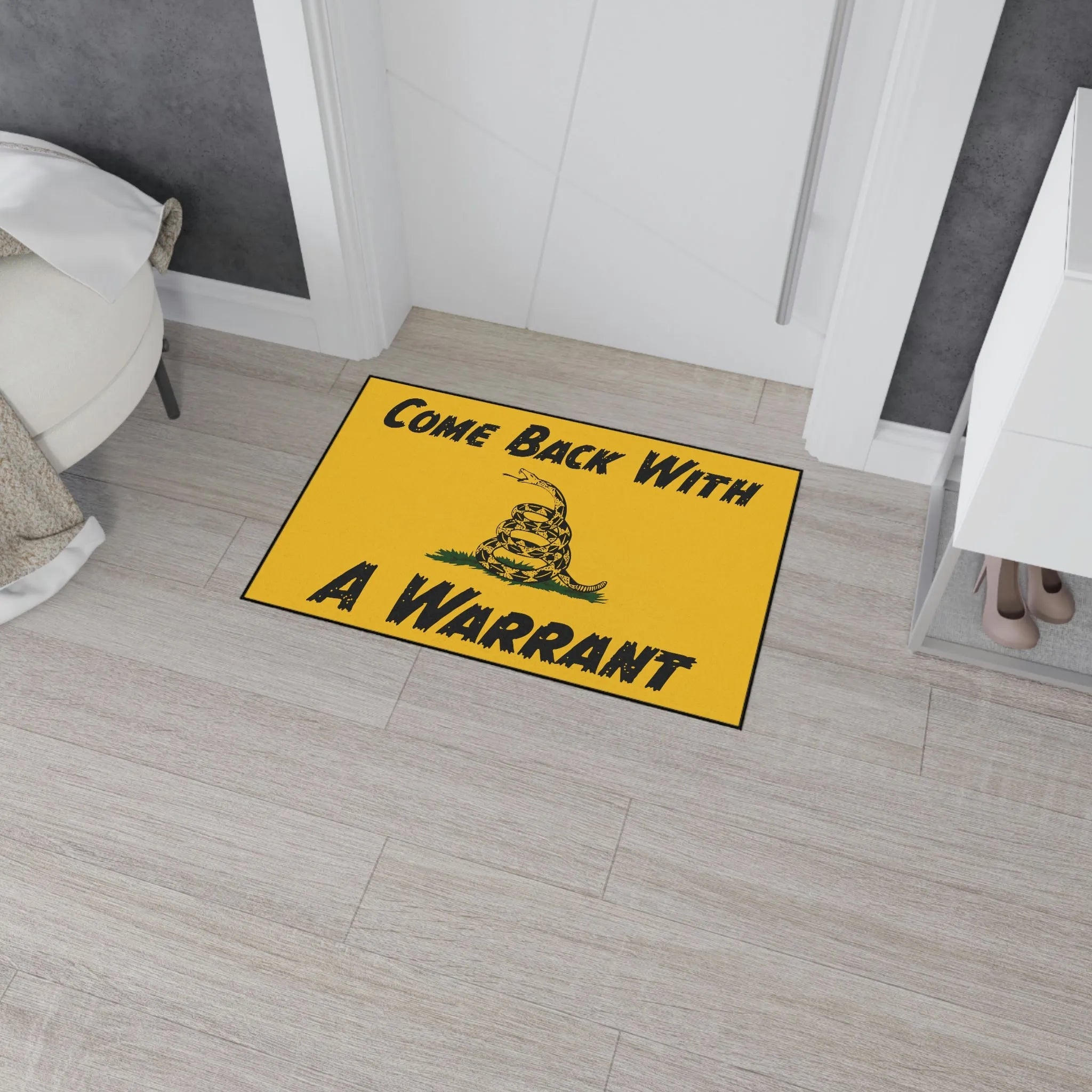 With the phrase "Come Back With A Warrant" prominently displayed on the mat, this product is a clear message to any uninvited guests that they are not welcome without proper legal authority. It's the perfect way to express your belief in personal liberty and freedom from government overreach, all while adding a touch of humor to your decor.