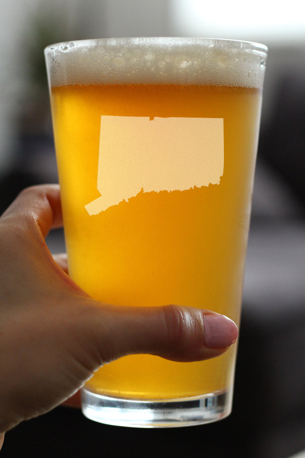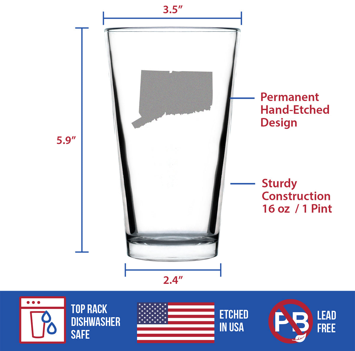 Connecticut State Outline Pint Glass for Beer - State Themed Drinking Decor and Gifts for Connecticuters and Nutmegger Women & Men - 16 Oz Glasses