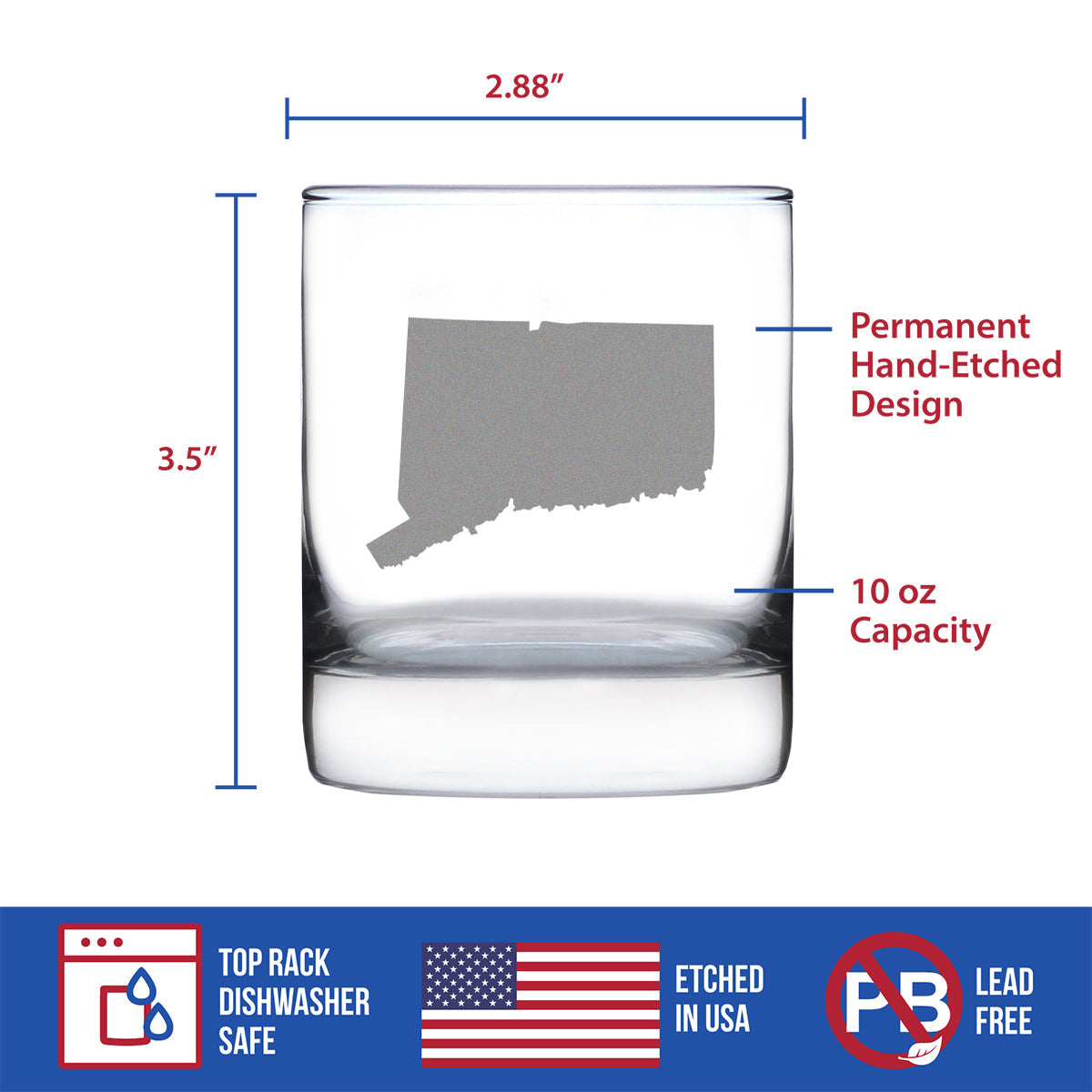 Connecticut State Outline Whiskey Rocks Glass - State Themed Drinking Decor and Gifts for Connecticuters and Nutmegger Women & Men - 10.25 Oz Whisky Tumbler Glasses