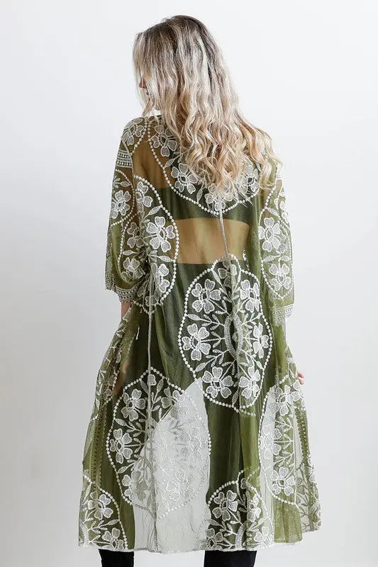 Contrast Mesh Cotton Lace Kimono ‐ Mustard / One Size