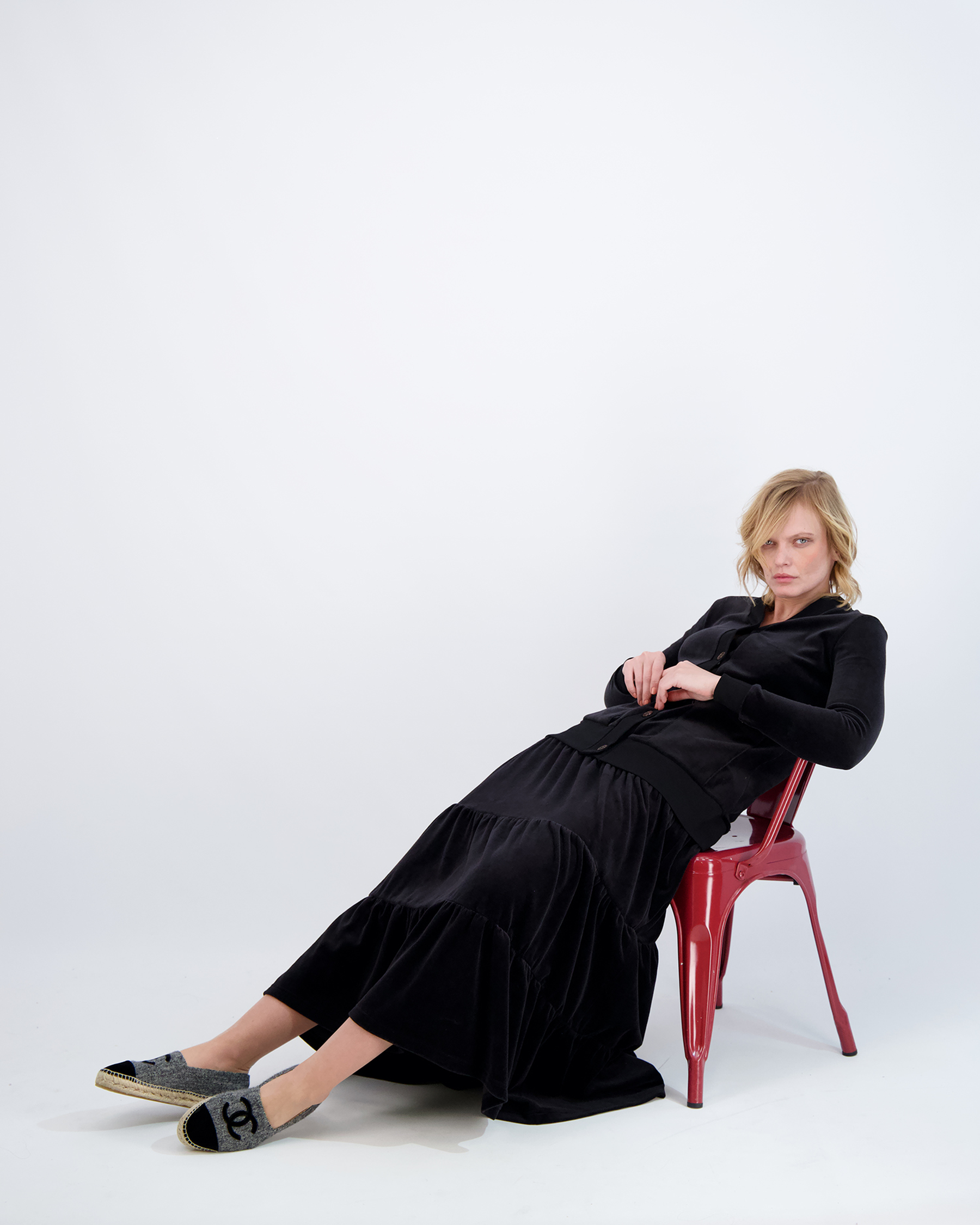 Cotton Velour Midi Length Cardigan ‐ Black / XS