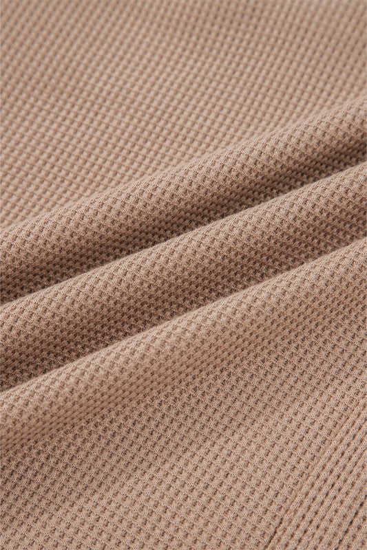 Cotton Waffle Stripe Plaid Patchwork Henley Top