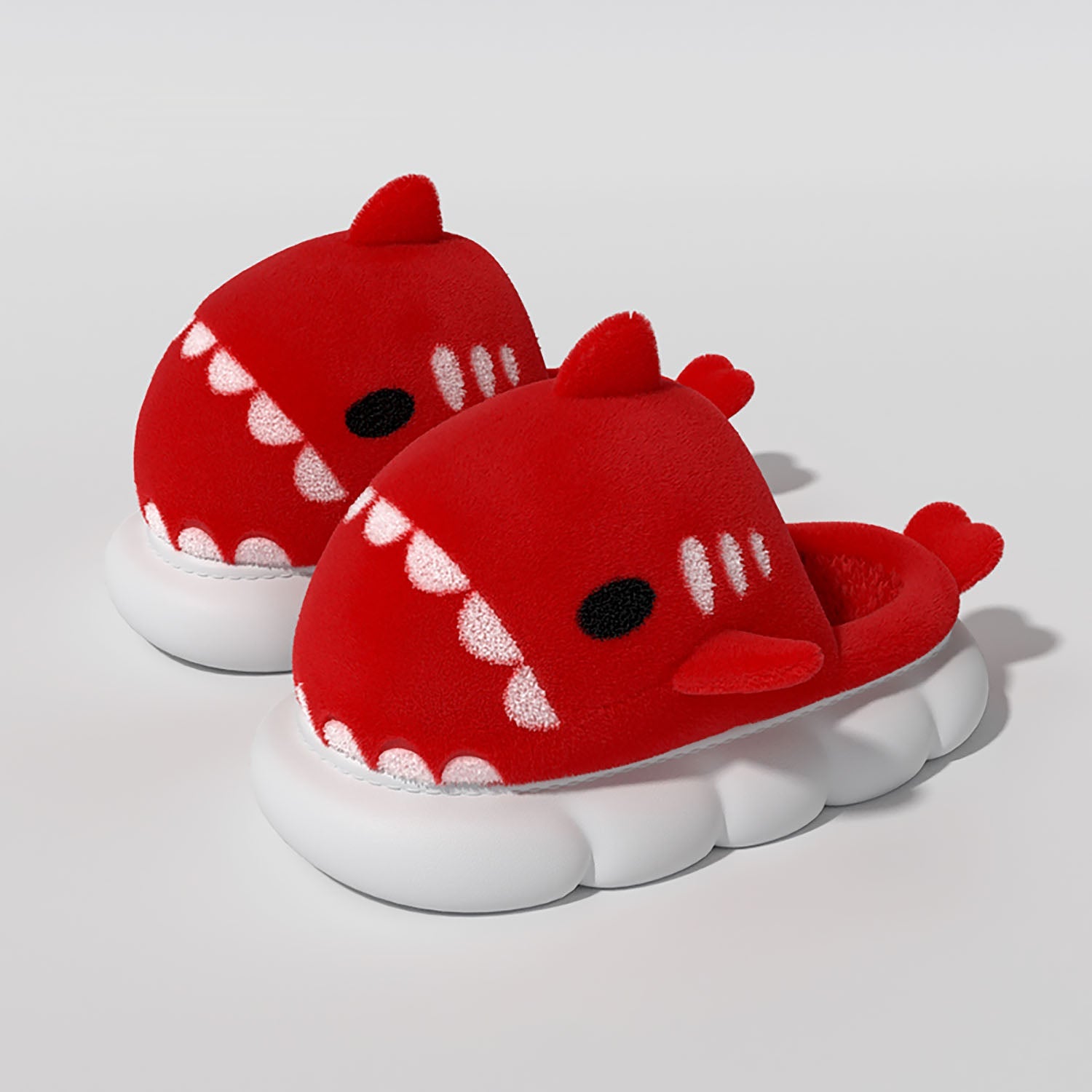 Couple Plush Cotton Outwear Winter Cartoon Shark Slides(Adults) | ZAKAPOP ‐ Red / 5.5-6.5 Women/ 4-5 Men