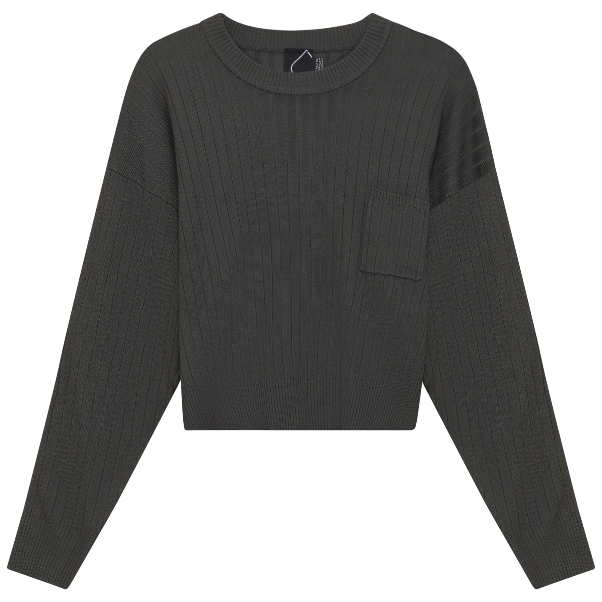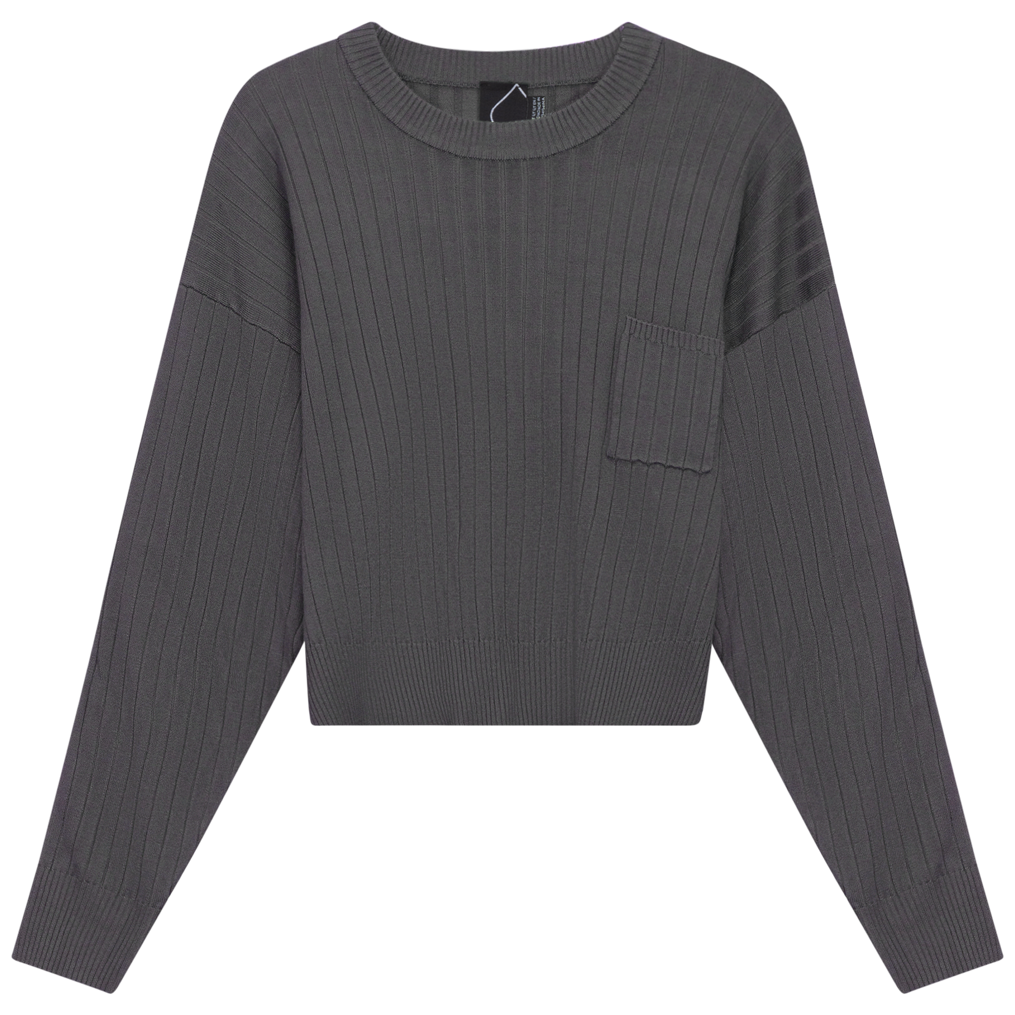 Cropped Loose Pocket Sweater ‐ Dark Grey Mix / S