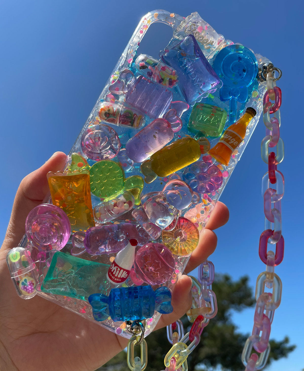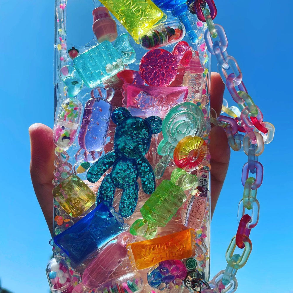 Crystal Candies, Gummy Bear And Confetti Jelly Cream Decoden Phone Case(Customizable) | ZAKAPOP ‐ Materials kit & Chain 72 inches / iPhone 14