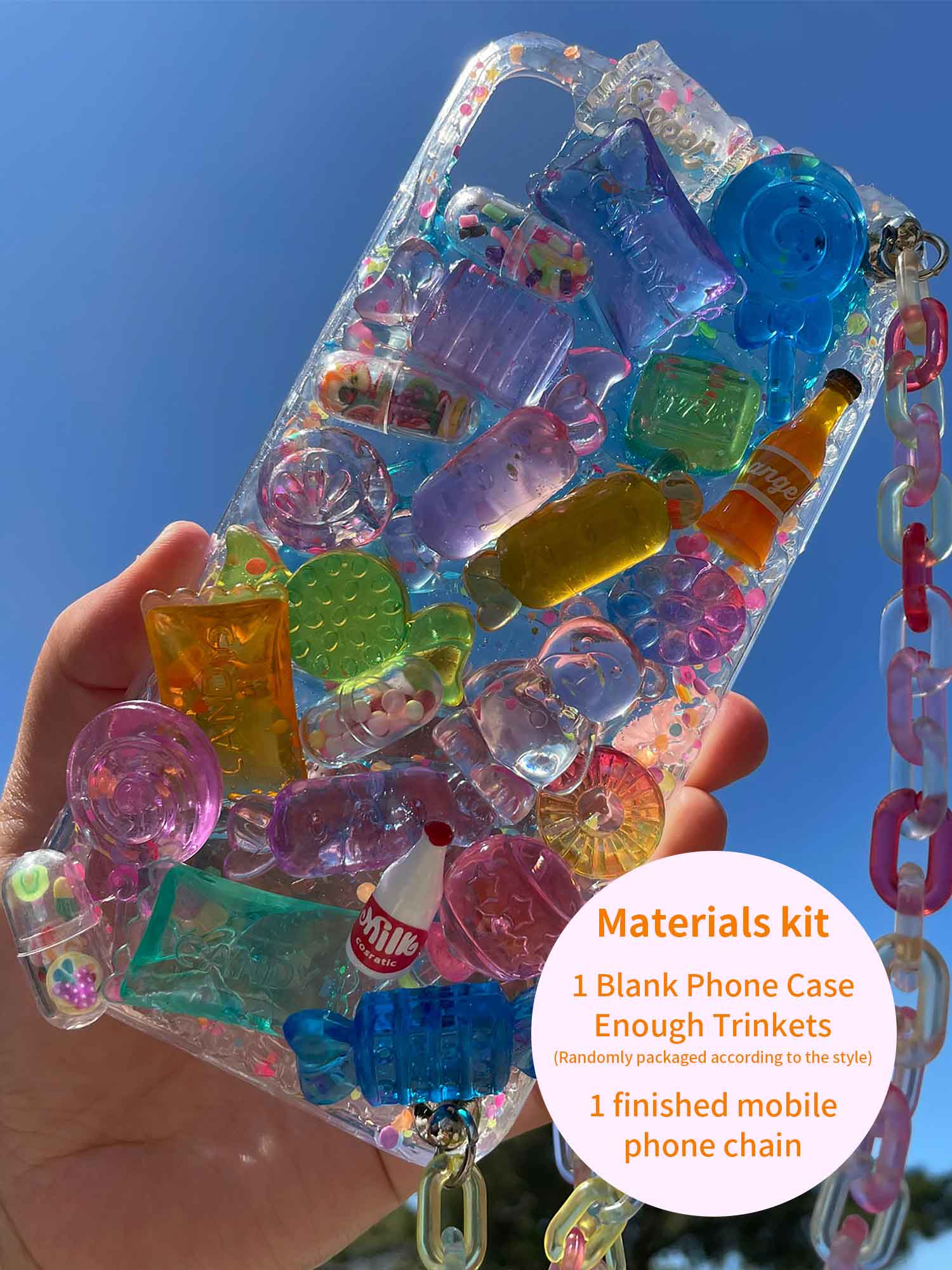 Crystal Candies, Gummy Bear And Confetti Jelly Cream Decoden Phone Case(Customizable) | ZAKAPOP ‐ Materials kit & Chain 72 inches / iPhone 15
