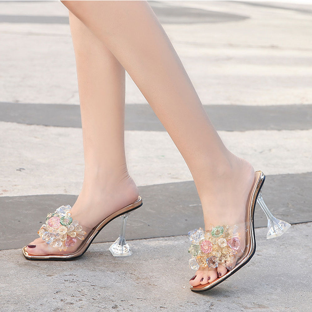 Crystal Splicing Clear High Heel Slippers | ZAKAPOP