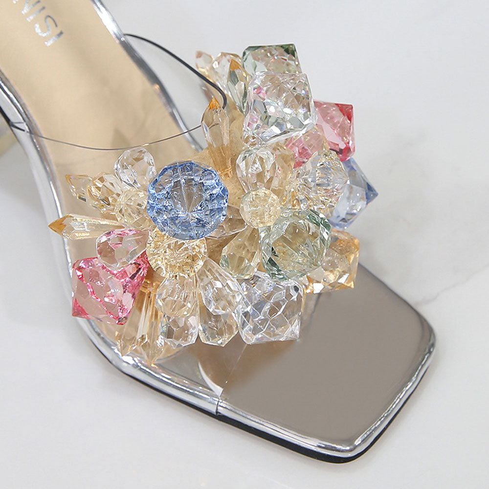 Crystal Splicing Clear High Heel Slippers | ZAKAPOP ‐ Silver / 5