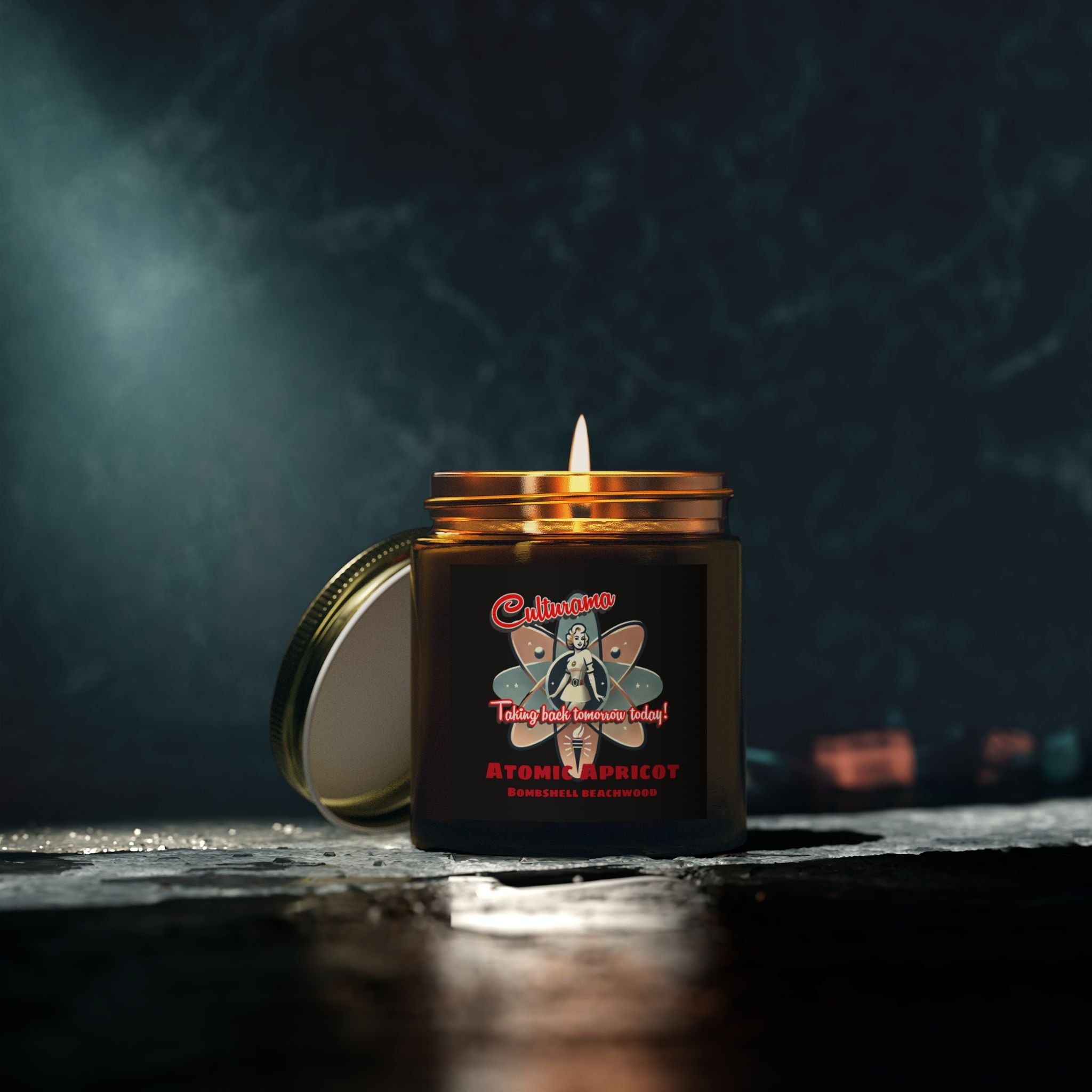 Culturama's Atomic Apricot Candles: Bombshell Beachwood (4oz, 9oz)