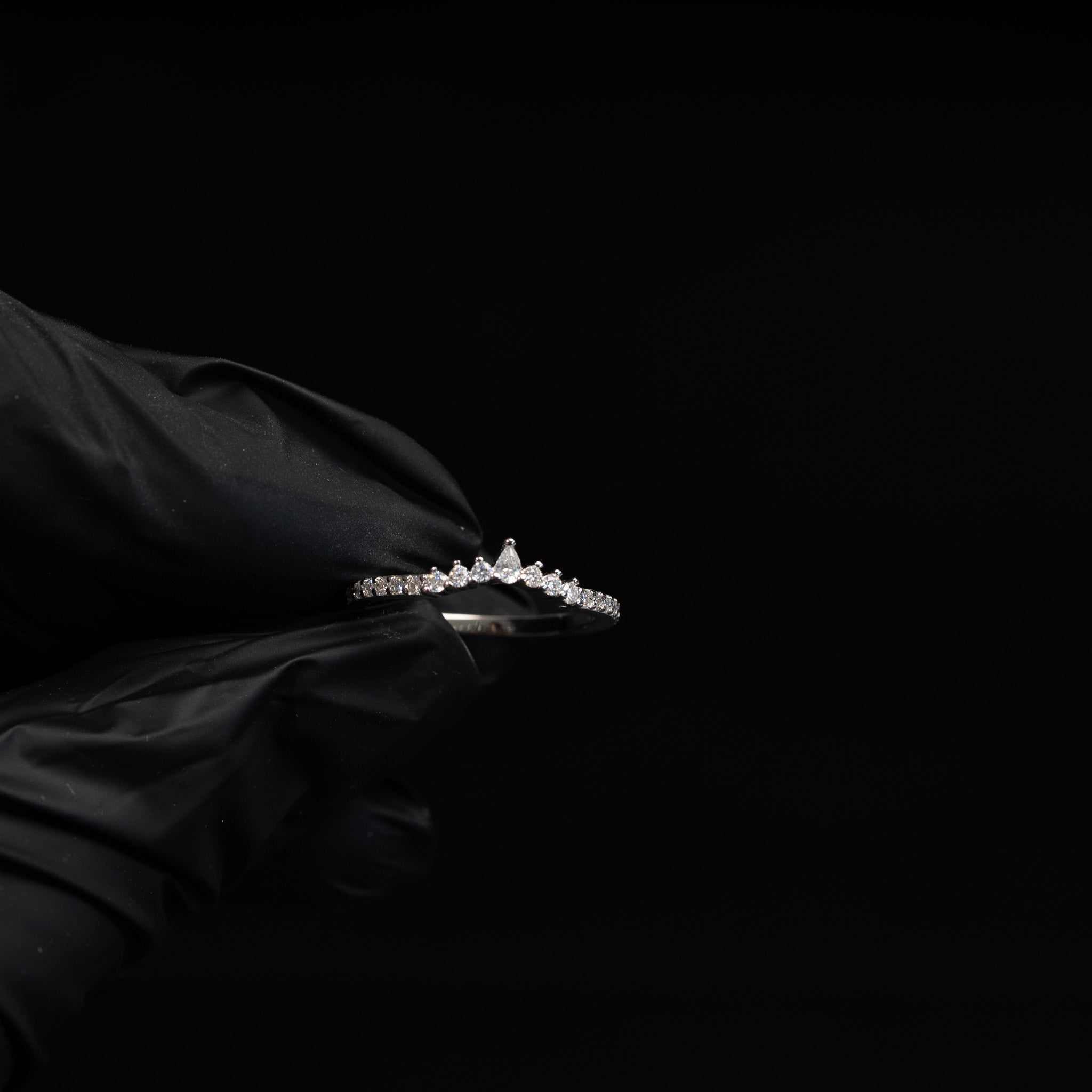Elevate your bridal look with this curved tear drop 925 sterling silver moissanite stacking women wedding band.
