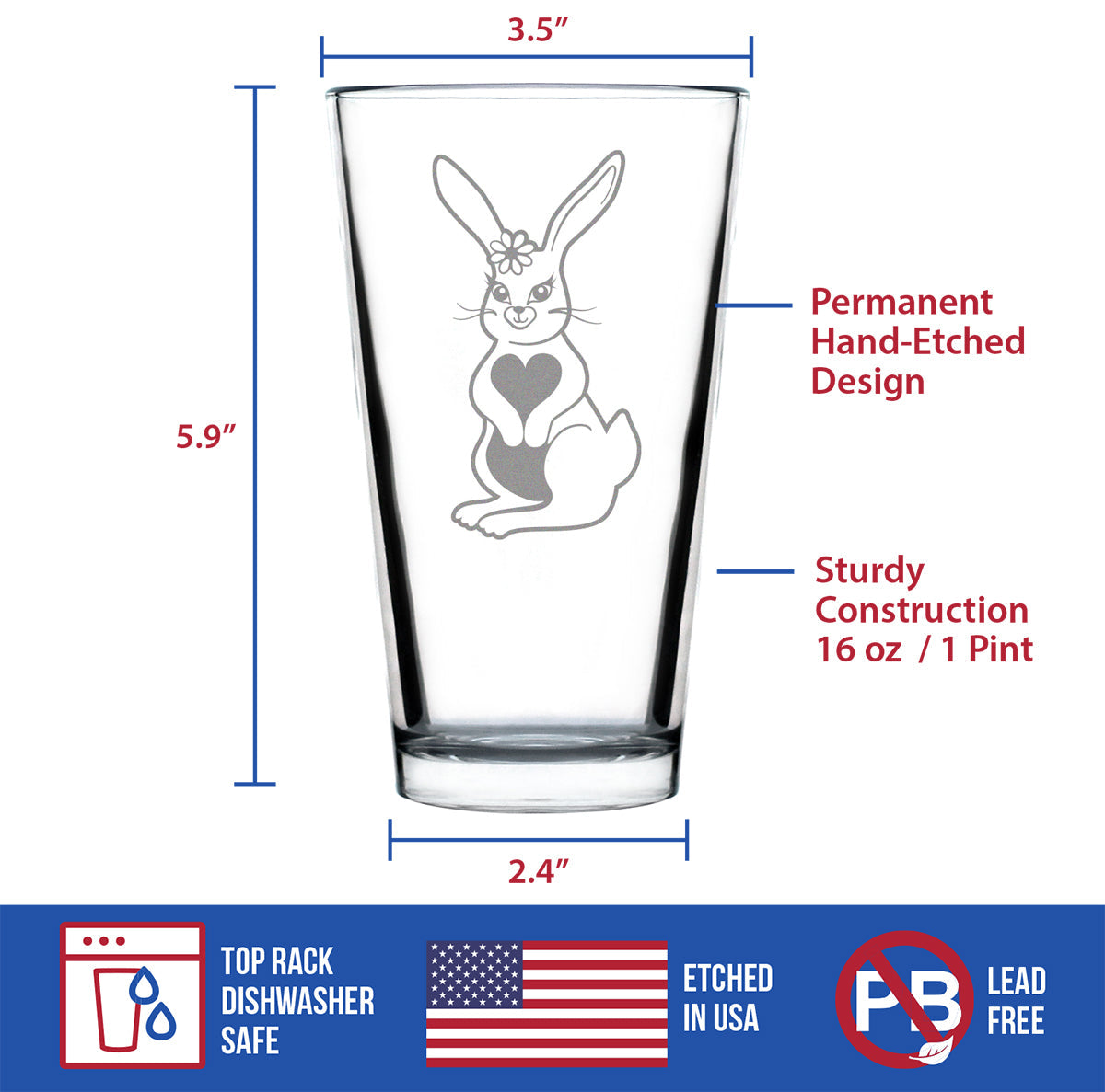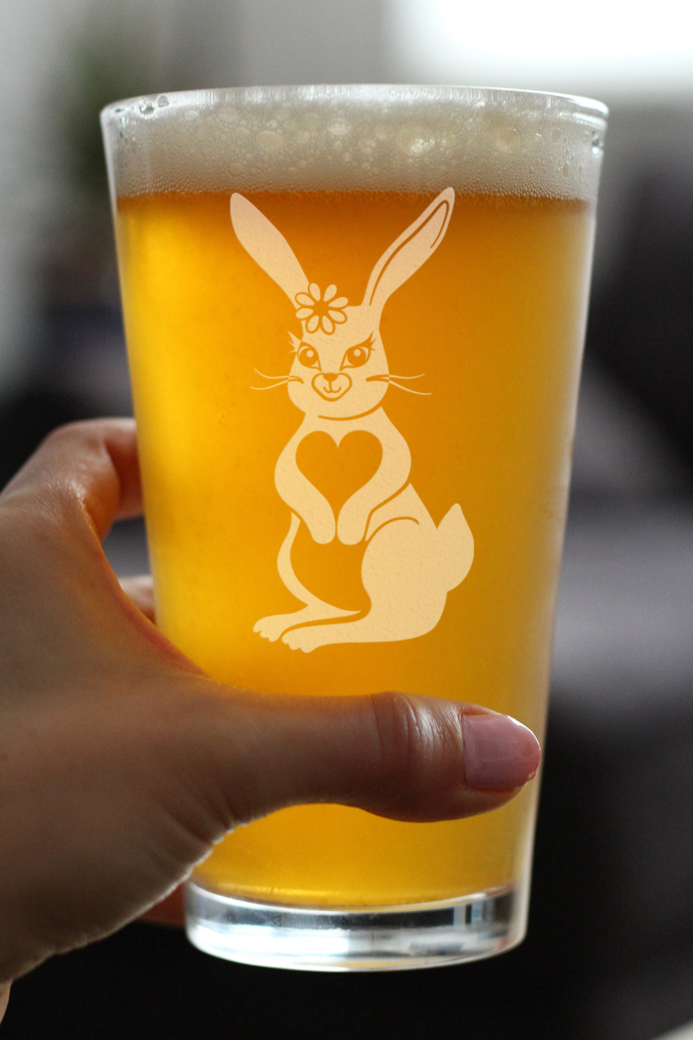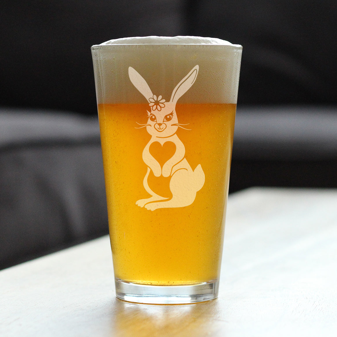 Cute Bunny Rabbit - Pint Glass for Beer - Hand Engraved Gifts for Men & Women That Love Bunnies