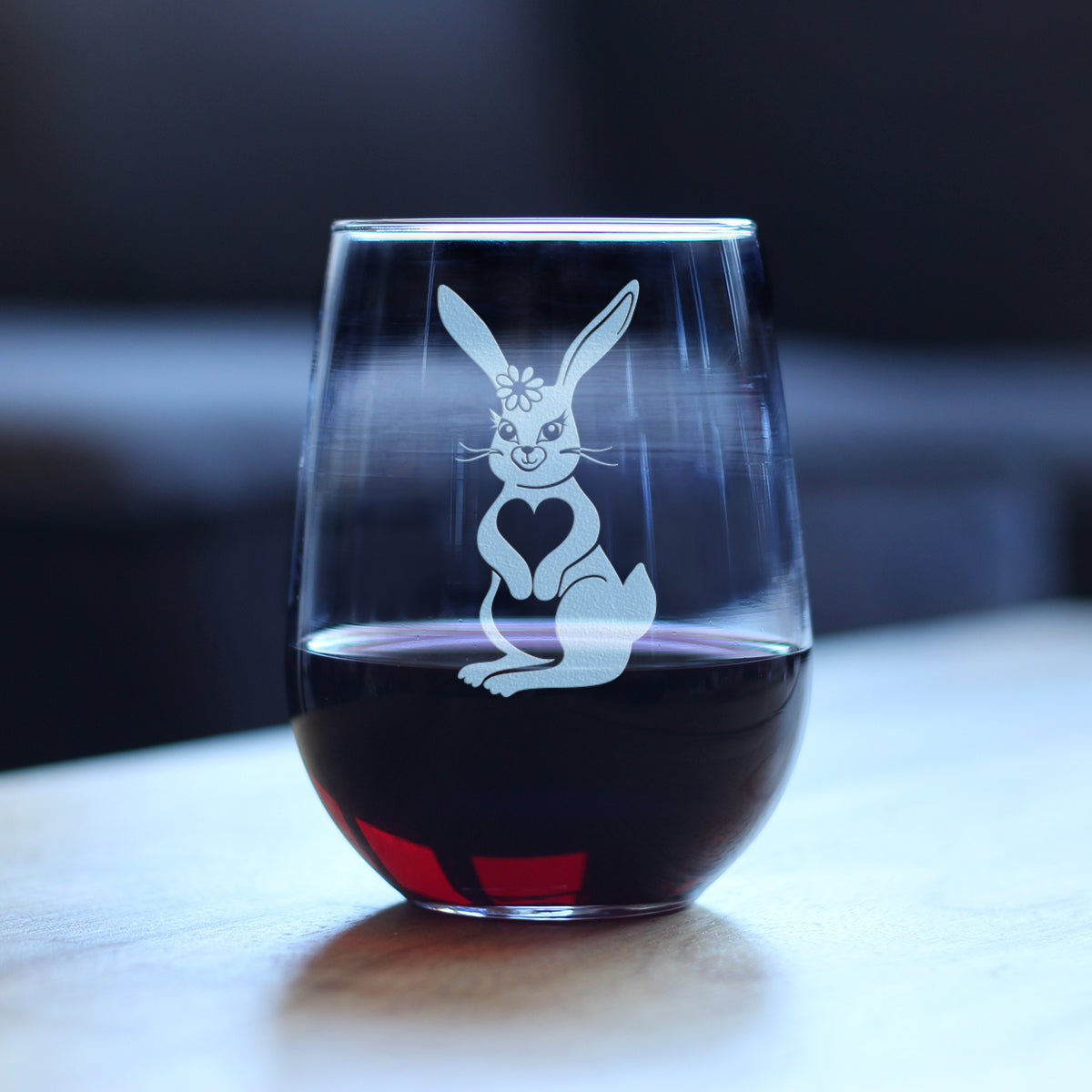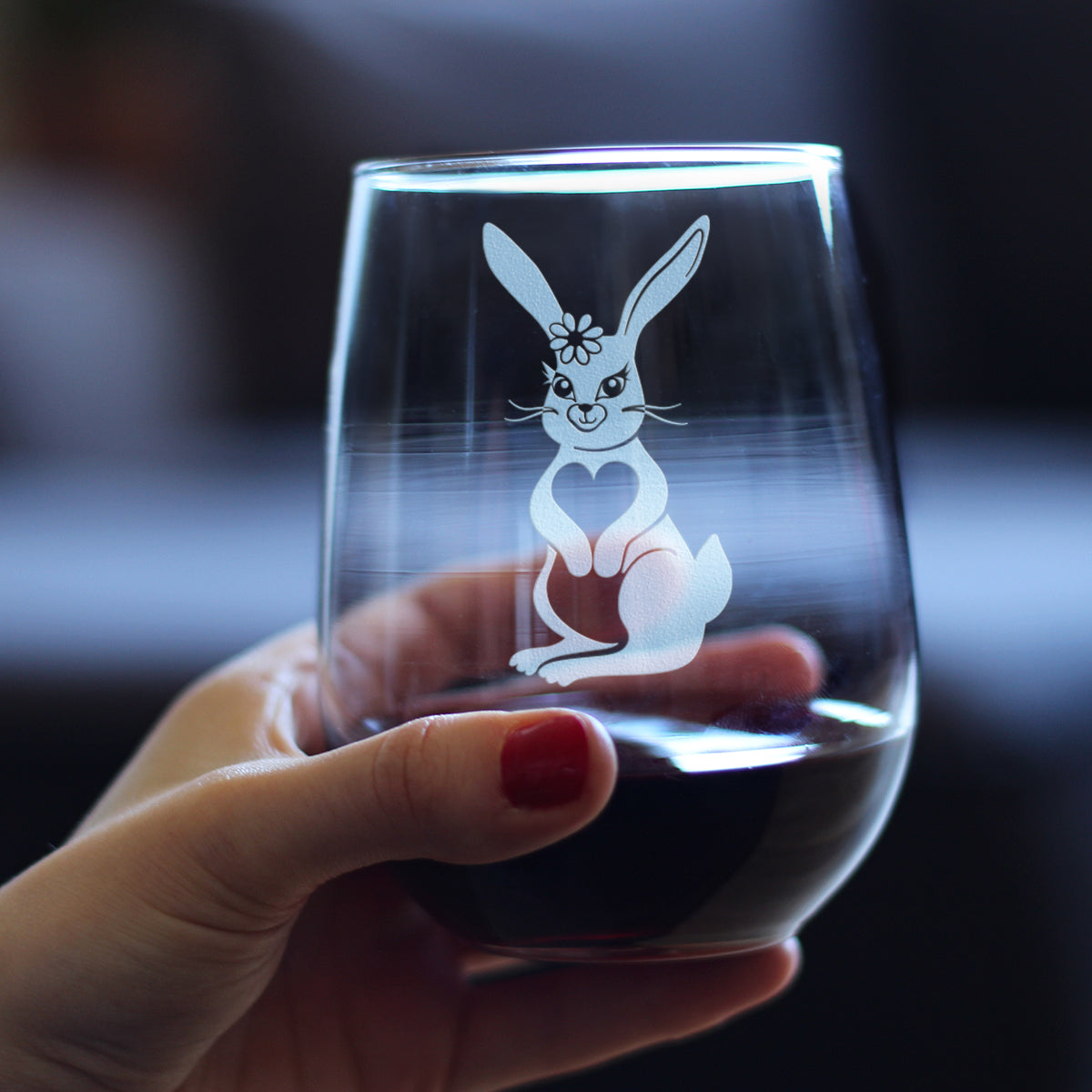 Cute Bunny Rabbit - Stemless Wine Glass - Hand Engraved Gifts for Men & Women That Love Bunnies