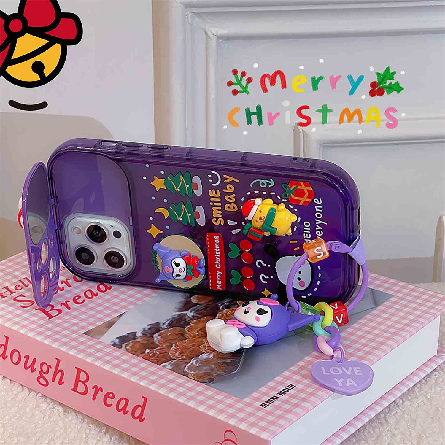 Cute Cartoon Anime Flip Mirror Christmas Phone Case For iPhone | ZAKAPOP ‐ Purple / iPhone 13