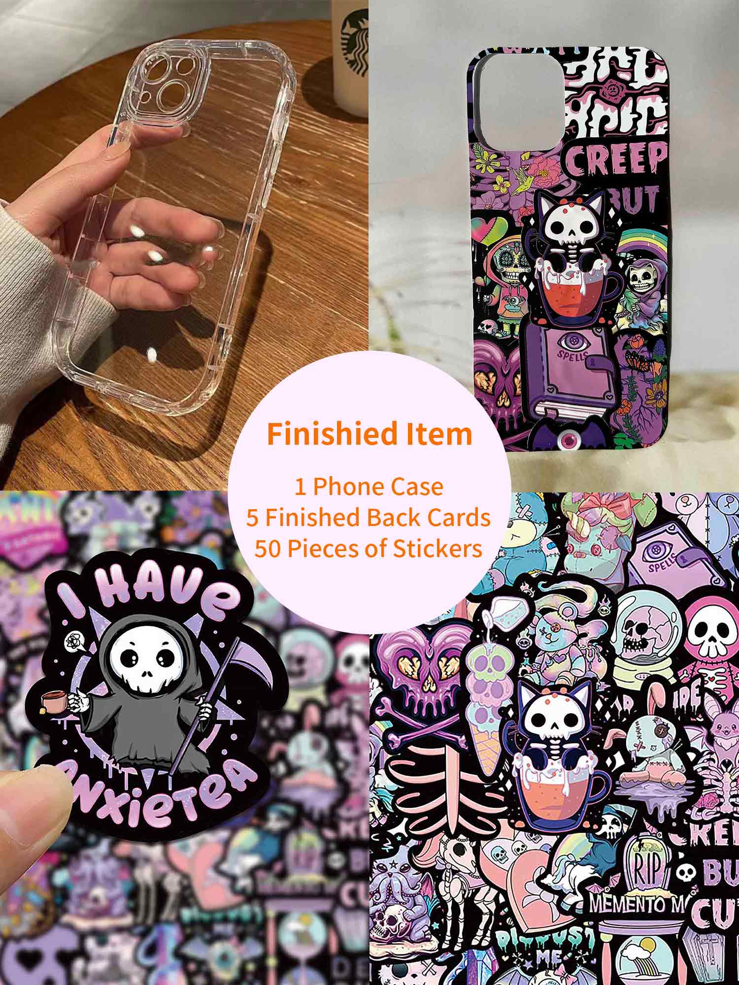 Finished Product: 1 Phone Case + 5 Finished Back Cards + 50 Pieces of Stickers