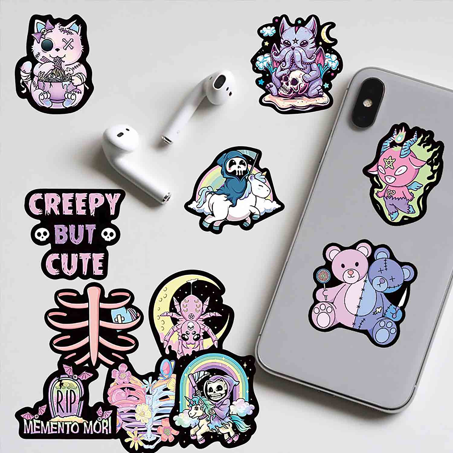 Cute Gothic Tea Cup Skull Cat DIY Phone Case Kit | ZAKAPOP ‐ Only Stickers (50 Pieces) / iPhone 12