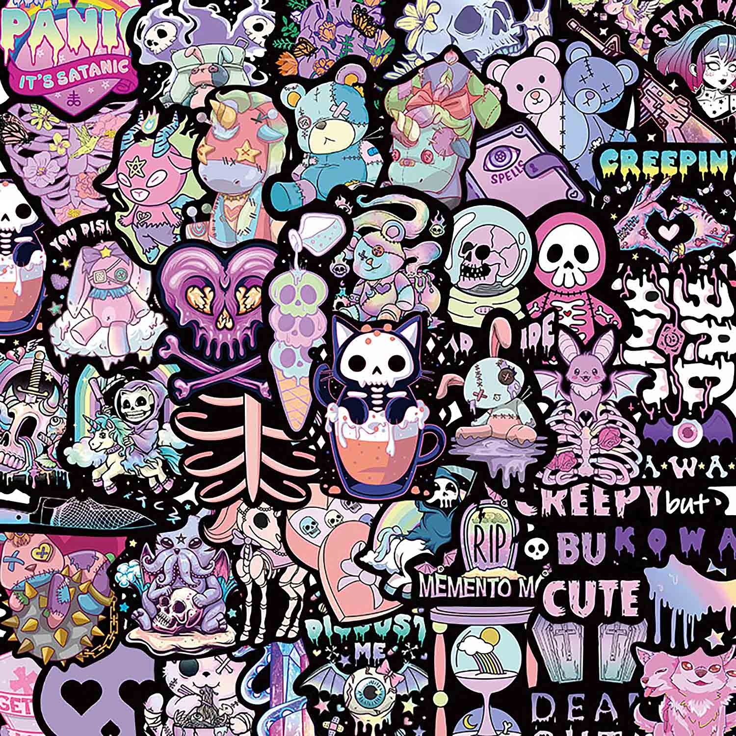Cute Gothic Tea Cup Skull Cat DIY Phone Case Kit | ZAKAPOP ‐ Only Stickers (50 Pieces) / Other iPhone Type