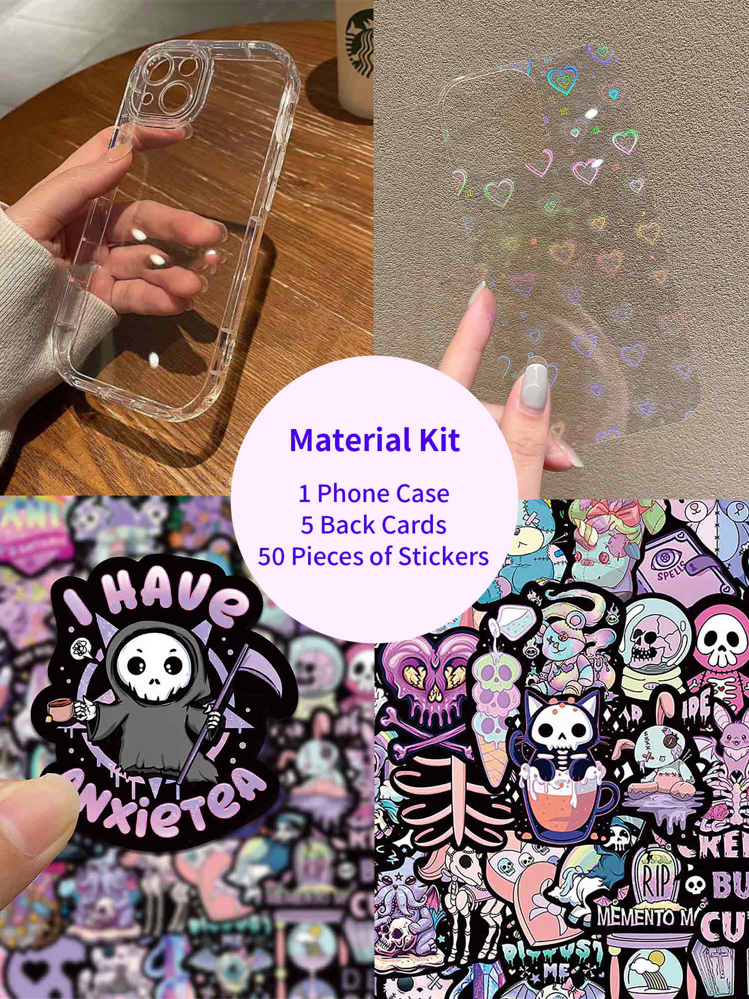 Material Kit: 1 Phone Case + 5 Back Cards + 50 Pieces of Stickers