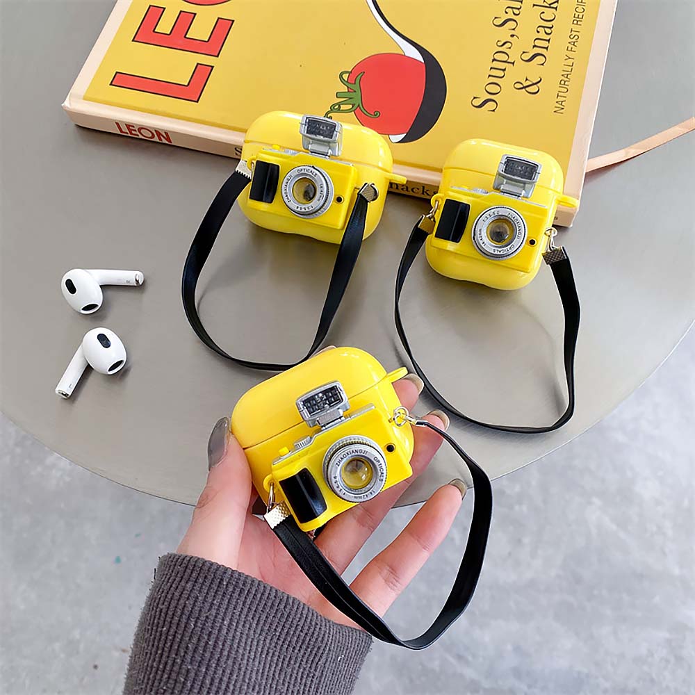 Cute LED Flash Camera Earphone Shell with Strap for Airpods | ZAKAPOP ‐ Yellow / AirPods 3