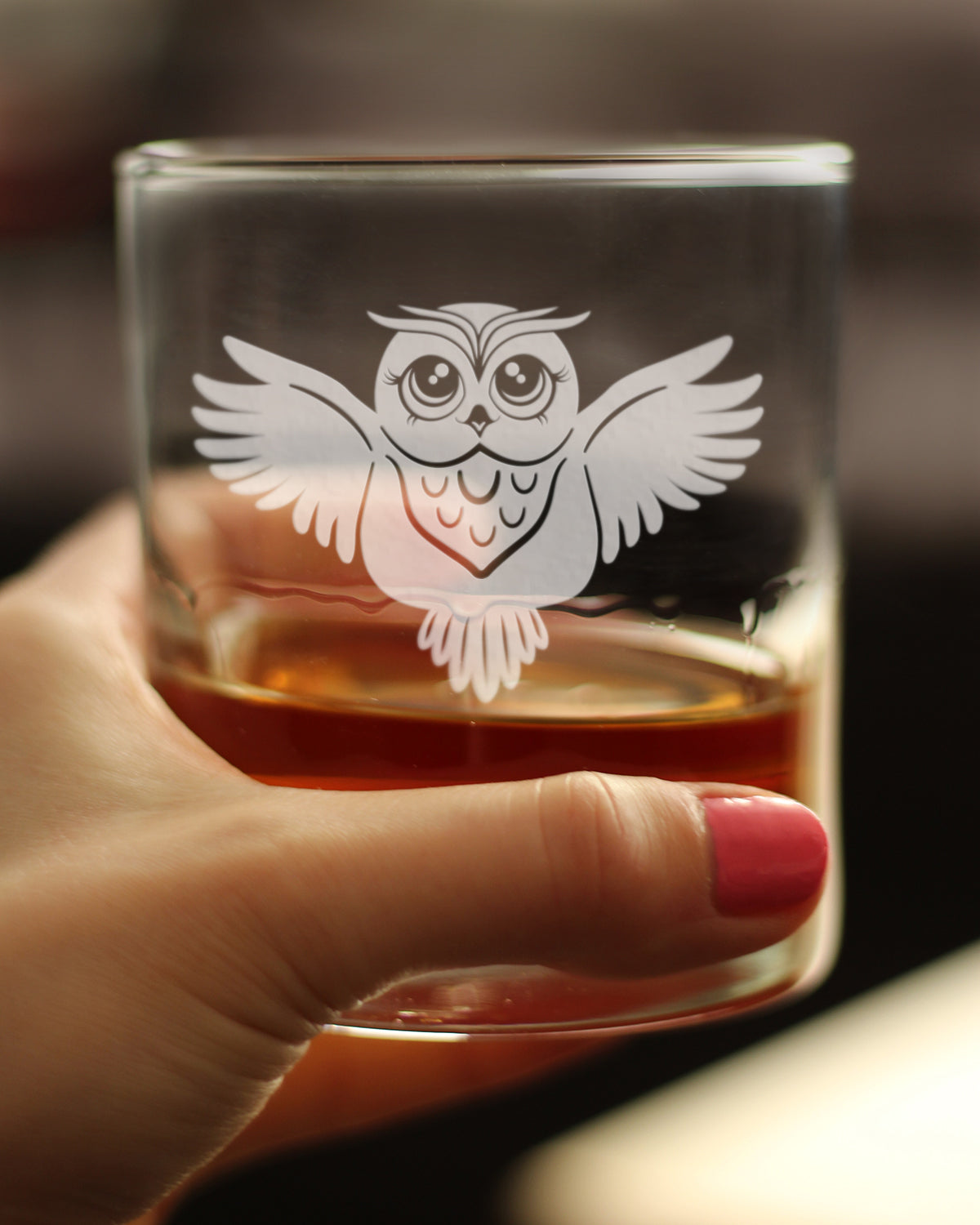 Cute Owl Rocks Glass - Fun Owl Decor and Gifts for Women and Men - 10.25 Oz Glasses