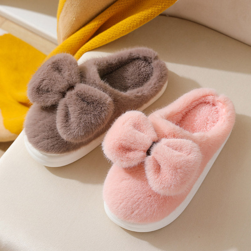 Cute Plush Winter Slippers With Bow | ZAKAPOP