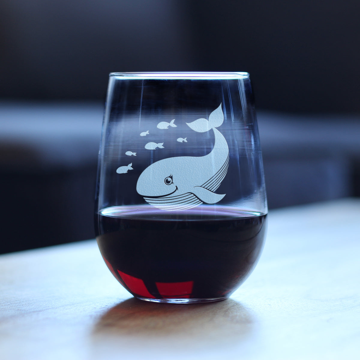 Cute Whale Stemless Wine Glass - Beach Themed Decor and Gifts for Whale Lovers - Large 17 Oz Glasses